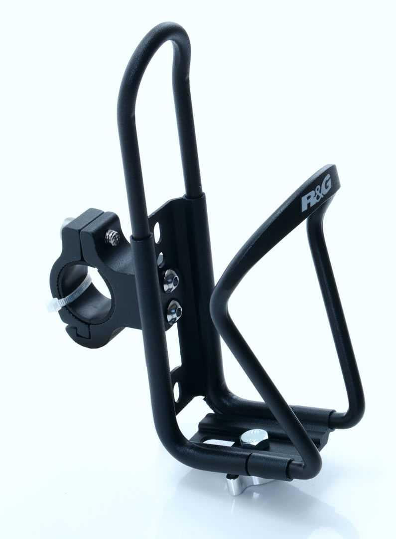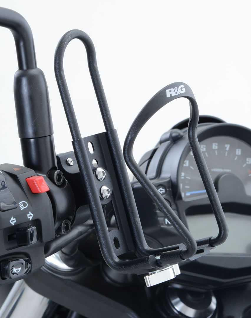 Tillverkad av högkvalitativ aluminium för att hålla produkten lätt och pulverlackerad för en långvarig och hållbar finish. R&G-flaskhållaren gör det enkelt för föraren att bära vatten på språng, på motorcykelstyret, kraschbågen eller tillbehörsskenorna, vilket hjälper föraren att hålla sig välhydrerad på långa turer. Med en justerbar klämma kan R&G-flaskhållaren monteras på nästan vilket styre som helst (78 - 1 i diameter).
