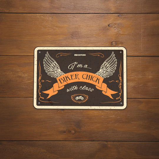 Leverantör: Oxford Oxford Garage Metallskylt: BIKER CHICK MED KLASS Fira att du är en del av den coolaste familjen på jorden med vår kollektion av bikerskyltar. Oavsett om du pendlar till jobbet på en förnuftig 125:a, korsar kontinenter på en metallmula eller river upp helggatorna...Ordinarie pris 99 krOrdinarie pris 99 kr