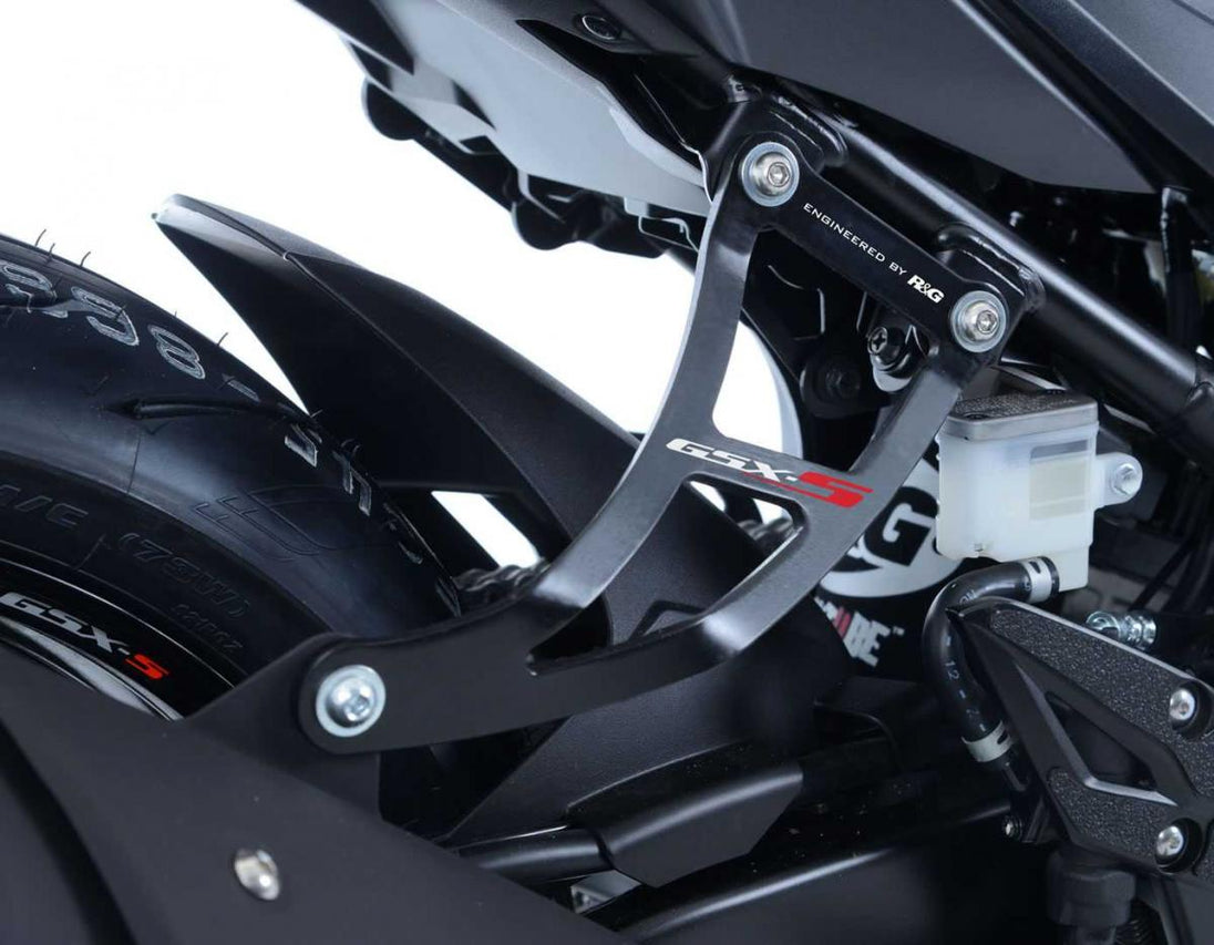 Detta R&G avgasupphängningskit levereras med både avgasupphängning (EH0078BK) och fotstödsplatta (BLP0009BK) för den andra sidan. Speciellt utformad för att passa Suzuki GSX-S750 17-modellens eleganta konturer. Kittet gör det möjligt att ta bort bakpinnarna på båda sidor för den där aggressiva racer-looken, samtidigt som det gör att ditt avgasrör kan stödjas ordentligt med en snygg R&G avgasupphängning. Avgasupphängningen är tillverkad av 6 mm aluminium och har en modern design som verkligen ger motorcykeln ett extra pift och gör sig av med de fula bakpinnarna (särskilt om de aldrig används!). Båda är lackerade i svart pulverlack för en högkvalitativ och hållbar finish. Avgasupphängningen levereras också med en specialdesignad GSX-S-tryckt grafik, medan fotstödsplattorna levereras med en R&G-grafik.