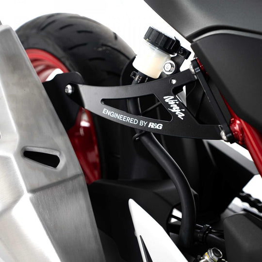 Leverantör: R&G Racing Avgasrörshängare och fotstödsskyddsplatta vänster (kit), SVART, Kawasaki Ninja 500 24- / Z 500 24- / Ninja 400 / Ninja 250 18- / Z400 19- / Z250 19- Detta kit med avgasrörsupphängning och fotstödsplåt gör det möjligt att ta bort baksätesfästet för en racercykellook, samtidigt som det gör att ditt avgasrör kan fästas ordentligt med ett snyggt R&G avgasrör. Observera att surrkroken på bilden...Ordinarie pris 1 529 krOrdinarie pris 1 529 kr