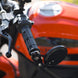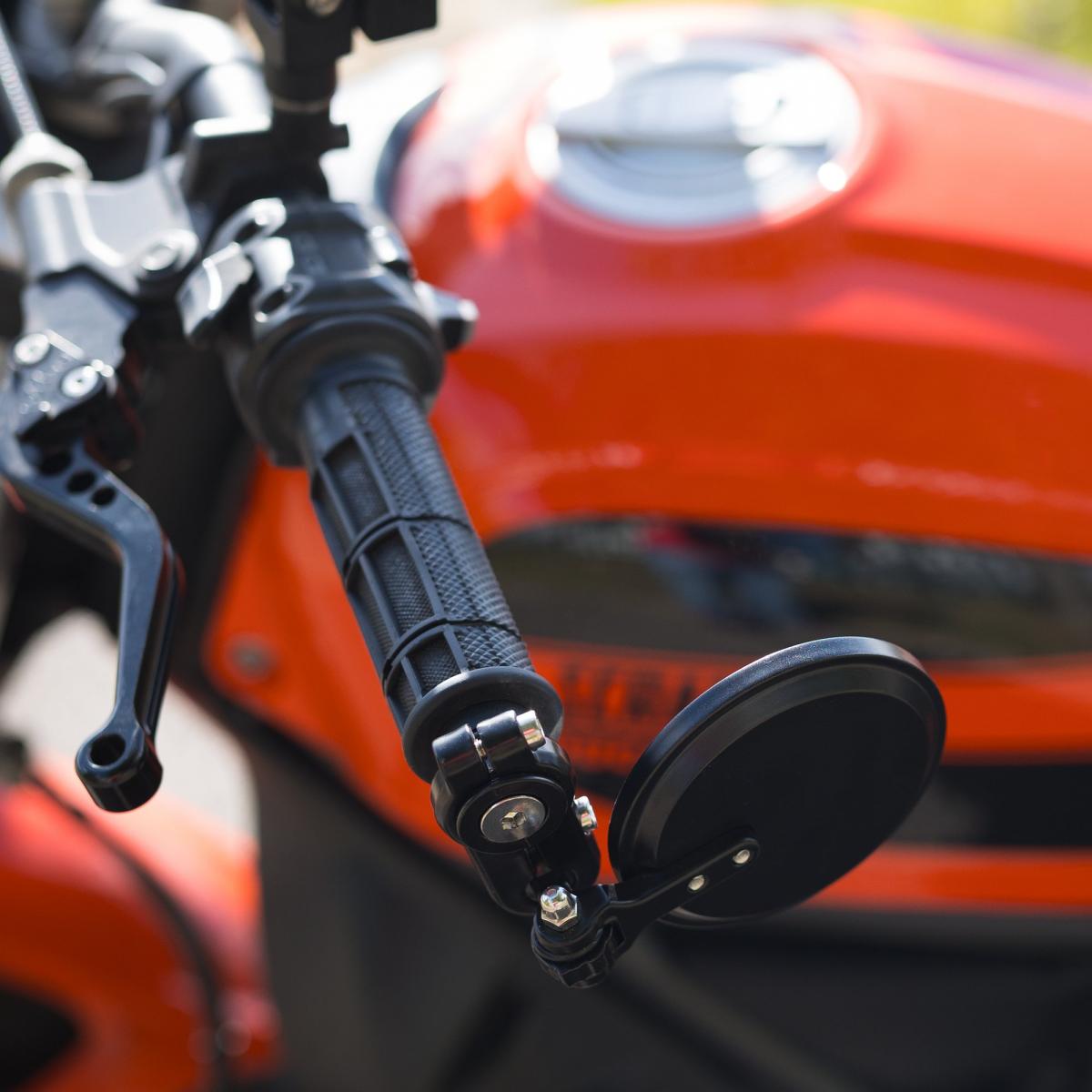 Perfekt för livliga stadsområden, dessa speglar kan fällas in för att ge din motorcykel 140 mm extra andrum (vänster och höger kombinerat). Den lågprofilerade designen och den innovativa fjädrande lagermekanismen gör att speglarna kan fällas in när de inte behövs för att ta mindre plats. Viktiga funktioner - Vänster och höger spegel ingår - Kan monteras ovanför eller under styret - 90 graders rörelse - Lämplig för alla motorcykeltyper - Svart anodiserad aluminiumkonstruktion - Spegel med 76 mm diameter - 12-18 mm expansionsbussningar - Lätt justerbar - Universalmontering