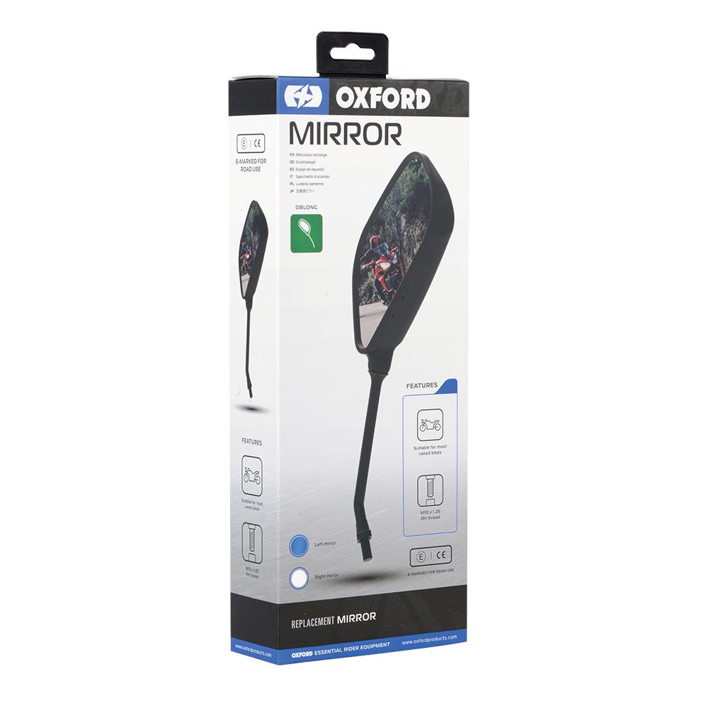 En reservspegel som passar de flesta naked bikes. Viktiga funktioner - E-märkt för vägbruk - Vänster (OX574) och höger (OX575) spegel - M10 x 1,25 högergänga - Spegeladaptrar finns i en mängd olika storlekar (OX579-OX581)