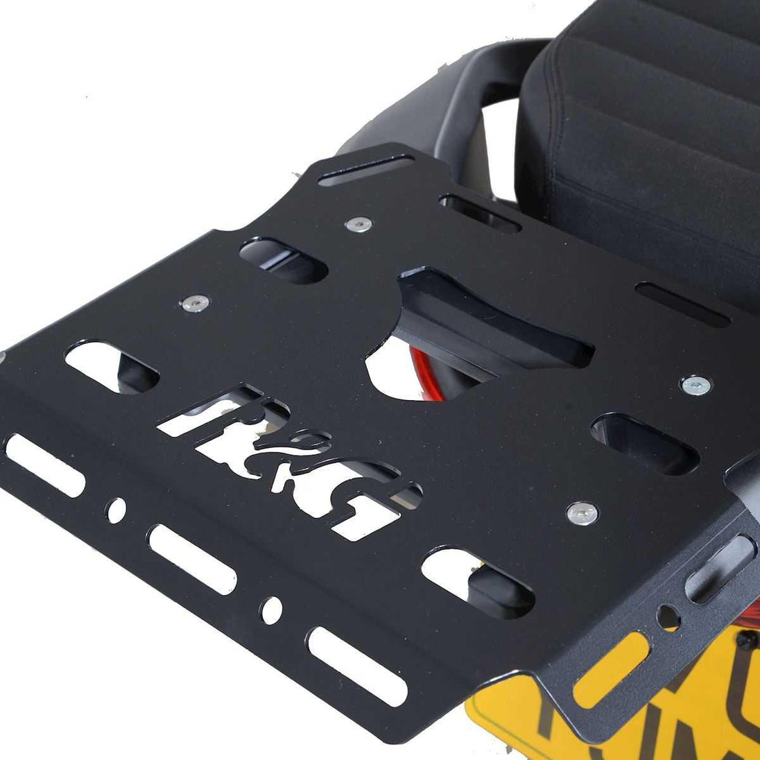 Vår helt nya pakethållarplatta i borstad aluminium bevisar sitt värde genom fantastisk hållbarhet under krävande turer och terrängkörning. Den har en snygg, laserskuren R&G-logotyp för extra beröm, och genom att utöka och utnyttja utrymmet på din cykel är den perfekt för att säkerställa att du har allt du behöver med dig på din nästa stora resa. Gå inte utan den på ditt nästa äventyr!