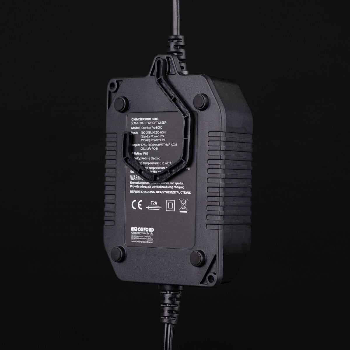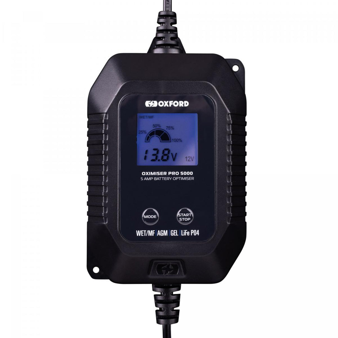 Oximiser Pro är en serie professionella batterioptimerare utformade för att automatiskt ladda, underhålla och optimera ditt batteri. Oximiser Pro 5000 laddar en rad 12V-batterier med en maximal laddningshastighet på 5000mA (5A). Det intelligenta 8-stegs automatiska programmet säkerställer att varje batteri laddas korrekt och säkert till sin optimala spänning innan det växlar till underhållsläge, vilket förlänger batteriets livslängd. Laddningsprogram är kompatibelt med WET/MF-, AGM-, GEL- och LiFePO4-batterier och anpassas till den valda batteritypen. Ett avsulfateringssteg reparerar skadade batterier automatiskt under laddningsprofilen och återställer deras liv (inte LiFePO4). Oximiser Pros slagtåliga, brandsäkra ABS-hölje är lämpligt för användning i alla miljöer och är ultraljudförseglat för att uppnå IP65-klassning. Den tydliga, lättlästa LCD-displayen hjälper användaren genom laddningsstegen och vid behov kan laddaren lyftas från marken genom att fästas på en avtagbar galge. Viktiga funktioner - Vädertålig IP65-klassad - inomhus- och utomhusbruk - Automatisk laddning i 8 steg: polaritetstest, analys, desulfatering (12V WET/MF, AGM, GEL), mjukstartsläge, bulkläge, absorptionsläge, spänningskontroll, underhållsläge (hållspänning) - Ah-kapacitet: 40AH - 120AH - Kompatibel med: 12V WET/MF, AGM, GEL och LiFePO4-batterier - Maxeffekt 5000mA - LCD-display: tydlig och lättläst batteriladdningsinformation - Slagtåligt, brandsäkert ABS-hölje - Bakmonterade gummifötter för ökad ventilation runt Oximizer-höljet - Vattentät kabelutgång med dragavlastning - Vinterkabel - Avtagbar upphängning: lätt att använda, snäpp fast och vrid för att hålla upphängningen på plats