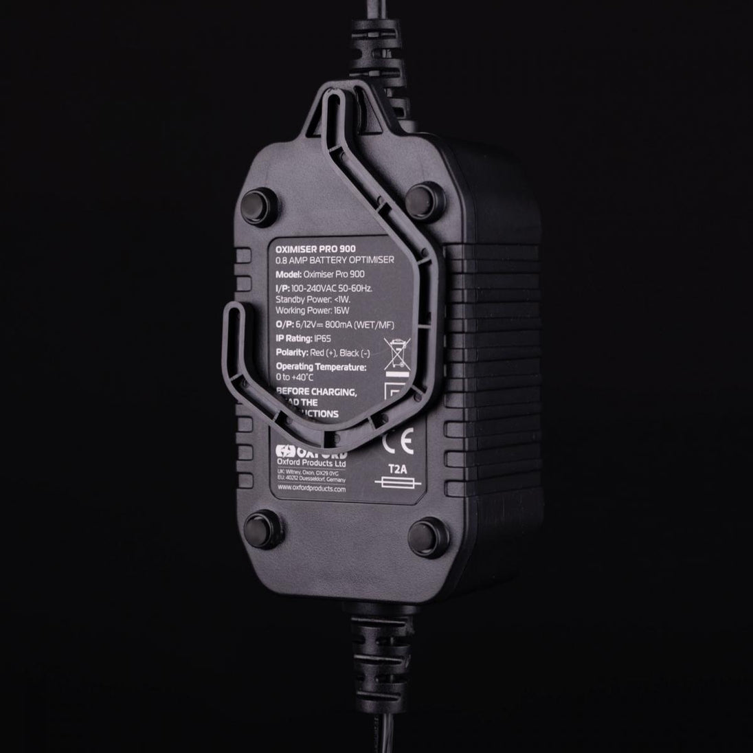 Oximiser Pro är en serie professionella batterioptimerare utformade för att automatiskt ladda, underhålla och optimera ditt batteri. Oximiser Pro 900 laddar 6- och 12V WET/MF-batterier med en maximal laddningshastighet på 800mA (0,8A). Det intelligenta 7-stegs automatiska programmet säkerställer att varje batteri laddas korrekt och säkert till sin optimala spänning innan det växlar till underhållsläge, vilket förlänger batteriets livslängd. Oximiser Pros slagtåliga, brandsäkra ABS-hölje är lämpligt för användning i alla miljöer och ultraljudförseglat för att uppnå en IP65-klassning. Den tydliga, lättlästa LCD-displayen hjälper användaren genom laddningsstegen och vid behov kan laddaren lyftas från marken genom att fästas på en avtagbar galge. Viktiga funktioner - Vädertålig IP65-klassad - inomhus- och utomhusbruk - Automatisk laddning i 7 steg: polaritetstest, analys, mjukstartsläge, bulkläge, absorptionsläge, spänningskontroll, underhållsläge (hållspänning) - Ah-kapacitet: 3,5 Ah - 20 Ah - Kompatibel med: 6V och 12V WET/MF-batterier - Maxutgång 800 mA - LCD-display: tydlig och lättläst batteriladdningsinformation - Slagtåligt, brandsäkert ABS-hölje - Bakmonterade gummifötter för ökad ventilation runt Oximizer-höljet - Vattentät kabelutgång med dragavlastning - Vinterkabel - Avtagbar upphängning: lätt att använda, snäpp fast och vrid för att hålla upphängningen på plats
