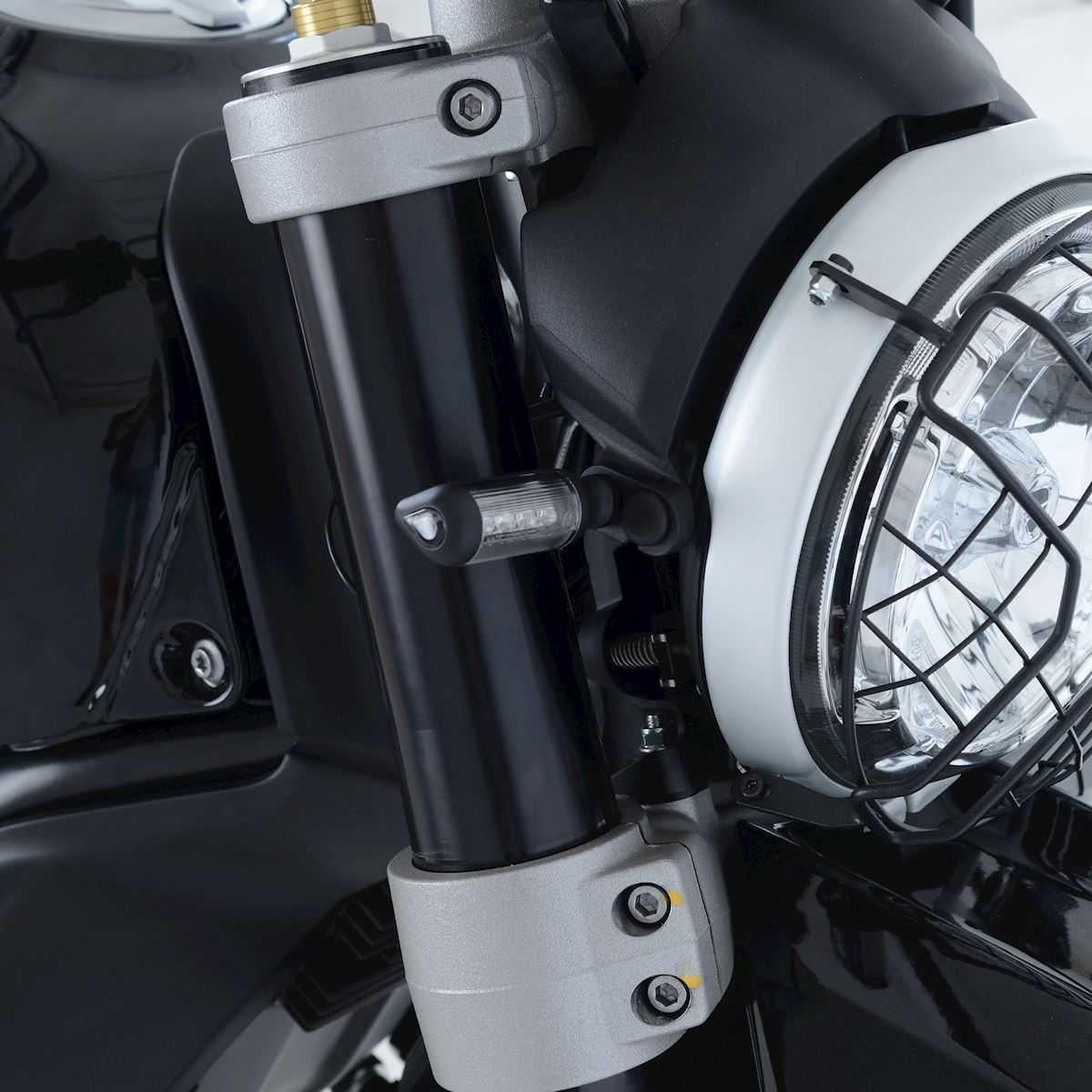 Dessa R&G-blinkersadaptrar är tillverkade för att passa Ducati Desert Sled 18- (fram och bak) och Ducati Scrambler 1100 18- (endast fram) modeller och möjliggör användning av våra egna mikroblinkers (RG370RG371RG372) som framblinkers, vilket eliminerar de stora OEM-blinkersen och ger din motorcykel ett mer sportigt utseende. Observera: INGA blinkers ingår i detta kit.