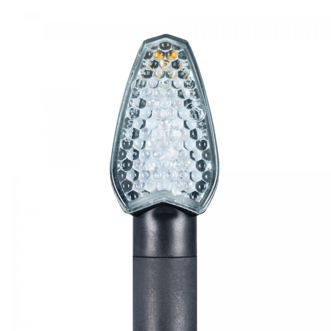 Byt ut dina blinkers mot denna skräddarsydda design. Viktiga funktioner - Mattsvart hölje - 12 LED-lampor - Kort stång - Mycket vattentät - E-märkt (helt lagligt för trafik) - Par blinkers + ett par motstånd ingår Storlek: 76 mm (L) x 27 mm (B) x 27 mm (H)