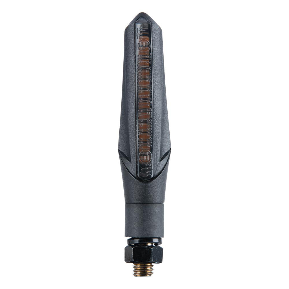 Det ultimata coola kitet! När den aktiveras sveper blinkersen dynamiskt över från insidan till utsidan av blinkersremsan. Viktiga funktioner - Universell passform - Vattentät design - Snygg design med kort skaft - Mattsvart hölje av premiumkvalitet - Paketet innehåller en höger och en vänster blinkers (för användning fram eller bak) - 12 LED-lampor (extra ljusa) - E-märkt, för vägbruk - 2 motstånd ingår för att reglera blinkningsfrekvensen - Spänning 12V Effekt 1,3W - M8-bult - gängstigning 1,25 Storlek: 85 mm (L) x 20 mm (B), 25 mm (D)