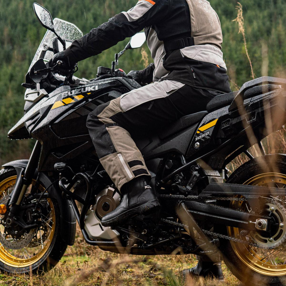 För cyklister som kräver det allra bästa inom våtvädersutrustning erbjuder de mycket mångsidiga Advanced Stormland Dry2Dry Trilaminate äventyrsbyxorna oöverträffad prestanda tack vare sitt mycket vattentäta och andningsbara ytterskal, skyfallssäkra egenskaper och en mängd ventiler. Ett WarmDry-termolager har Polartec Power Grid-stretch på viktiga områden, vilket gör att mellanlagret följer dina rörelser utan att offra värmen. Ta ut detta avtagbara lager, öppna de stora ventilationsöppningarna fram och bak i benen så kanaliseras det kylande luftflödet direkt till underkroppen. Byxorna har bekvämt uppnått en CE AA-klassning och CE Level 2-skydd i knän och armbågar kompletterar det omfattande paketet. Viktiga funktioner Skydd - CE AA-certifierad (EN 17092-3:2020) - Nivå 2 CE knä- och höftskydd (EN 1621-1:2012) - Reflekterande tryck för synlighet i mörkret - YKK långa och korta anslutningsdragkedjor möjliggör fastsättning av jackan för en säker, skyddande stängning Klimatkontroll - Dry2Dry Trilaminatkonstruktion - Uttagbart WarmDry-värmefoder med Polartec Power Grid stretchiga termiska zoner - 4 direkta ventilationszoner: 2 dragkedjor på låret och 2 dragkedjor på baksidan av låret - Vattentåliga dragkedjor på alla exponerade öppningar Material och konstruktion - Slitstarkt ytterskal i höghållfast nylon ger exceptionellt förhållande mellan styrka och vikt - Ripstop-nylontyg riktat mot kritiska stötzoner för ökad nötningsbeständighet - Tränssömmar förstärker stresspunkter - Trilaminatstretch i midjan, baksidan av knäna och ovanför byxans säte - Kilar i grenen med Trilaminatstretch för förbättrad rörelsefrihet vid på- och avstigning Justerbarhet och passform - Dragspelsstretchpaneler ovanför knäet för ökad rörelsefrihet - Tri-glide Justering av vävband i midja och vad - Upphöjd midja bak - Justerbara och avtagbara tri-glide-hängslen med tryckknappar och ergonomisk X-ryggkonstruktion - Kil med dragkedja och kardborrejustering Förvaring - 2 x framfickor med veckad expansion - 2 x sidofickor med dragkedja Recensioner En tre och en halv timmes vandring genom skyfall var ett bra test i slutet, jag var helt torr inuti. - RiDE Magazine, betygsatt som senaste kit Läs hela recensionen En starkt presterande äventyrsjacka som erbjuder bra valuta för pengarna - Adventure Bike Rider - Betygsatt 8/10 i Laminerad jacka Recension Läs hela recensionen I det våta testet höll Stormland allt vatten ute, särskilt med stormkragen som förhindrade att vatten trängde in förbi ett genomblött halsrör och ner längs halsen - RiDE Magazine - RIDE Recommended vinnare, maj 2023 Läs hela recensionen Läs mer om våra cykelkläder genom att utforska vår dedikerade webbplats: Försäkran om överensstämmelse Klicka här för att se överensstämmelsescertifieringar