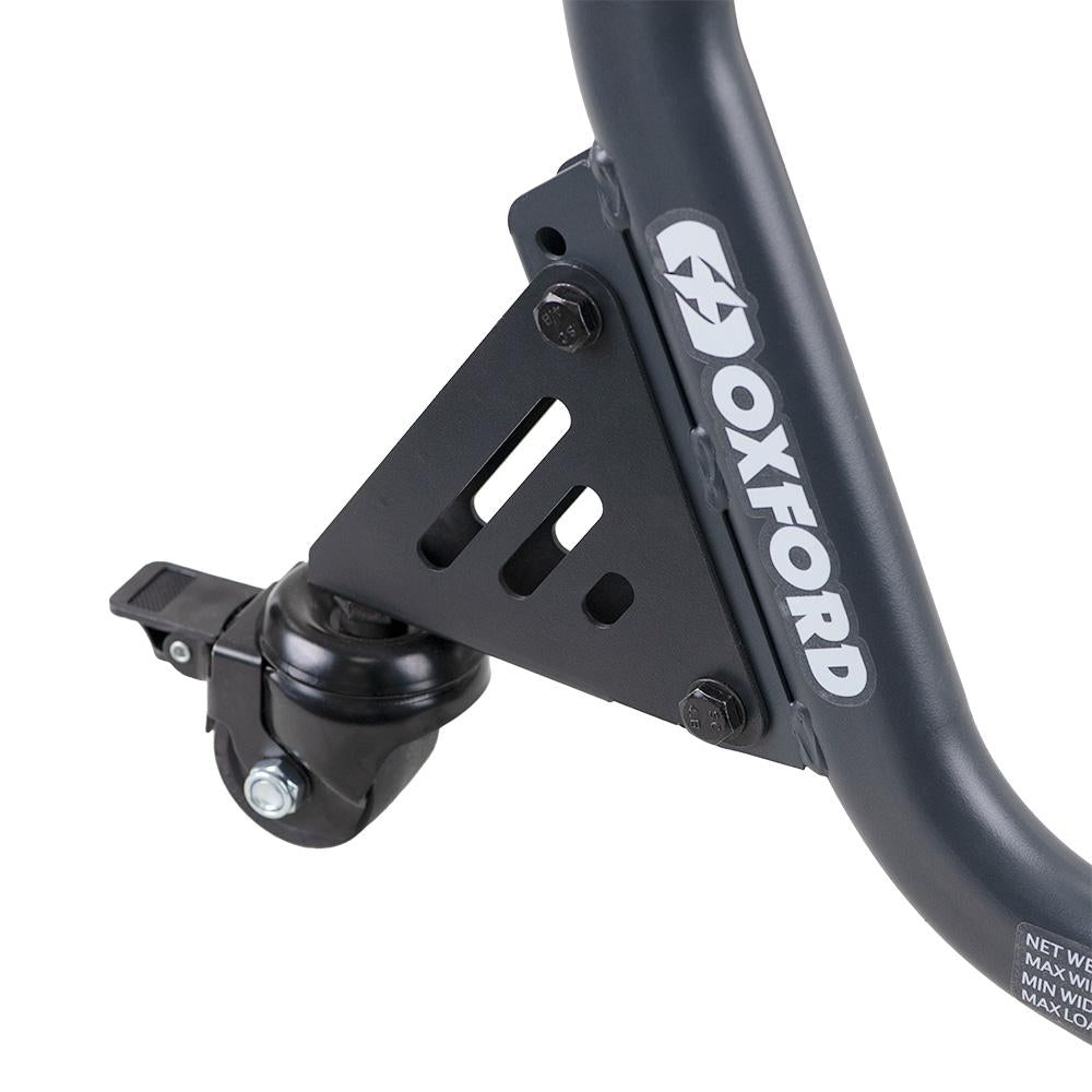 ZERO-G paddockställ passar alla typer av motorcyklar – inklusive de med enkelsidiga svingarmar – och preferenser, som ett val av gaffel- eller huvudstöd monterade på framsidan. Alla våra paddockställ är konstruerade med den senaste CAD-tekniken och 3D-modelleringstekniker. Genom att vara vetenskapligt utformade för att minimera den ansträngning som krävs för att flytta en given last, tar vår nya ZERO-G-serie av paddockställ bokstavligen bort vikten. Ännu bättre är att de kan göra detta utan att väga för mycket själva, vilket gör dem ännu enklare att använda och leva med. ZERO-G främre och bakre Dolly-paddockställ gör att du kan manövrera din motorcykel medan du är upphöjd. Med en styv oval stålkonstruktion och kraftiga fästelement är dessa betryggande solida och stabila verkstadsställ. De låsbara länkhjulen gör det enkelt att svänga din motorcykel i ett litet utrymme, perfekt för hemmaverkstäder och garage där utrymmet är begränsat. RiDE Magazine rankade Zero-G som BÄSTA KÖP i sin marknadsöversikt. De berömde de tydliga instruktionerna, finishen och de stora hjulen och förklarade att det var det enklaste stället att lyfta en motorcykel med i testet. Viktiga funktioner - Slitstark stålkonstruktion - Ovala rör för att förhindra rotation - Vridstöd för ökad stabilitet - Topplock i billetaluminium för tätt gränssnitt med lyftgafflar - Robotsvetsad för hög byggkvalitet och konsistens - Kraftiga fästelement - Kraftiga hjul gör att motorcykeln kan flyttas på stödet - Låsbara hjul för att förhindra oönskad rullning - Maxbelastning: 250 kg - Stödets vikt: 5,8 kg - Lyfthöjd: 325 mm (bultcentrum) Varning - Lyftgafflar kanske inte är lämpliga för alla motorcyklar, kontrollera monteringsmetoden för lämplighet före köp - Använd alltid i kombination med ett bakre stöd