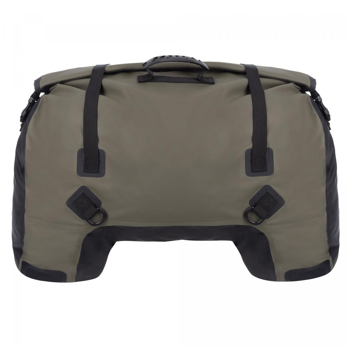 Bär allt på vad som helst! Låt oss inse det, många moderna cyklar är helt enkelt bagagefientliga. De har små baksäten och/eller obefintliga bakre hjälpramar... inget att vila mot och ingenstans att fästa något! Försök att montera ett par cykelväskor på hälften av de nya cyklarna som säljs idag - det är en utmaning! Men om du behöver STOR BÄRKAPACITET kan Oxfords AQUA Duffle-väskor vara svaret. De är perfekta för: - Sportcyklar med små baksäten... - Streetfighters utan bakre hjälpram... - Scootrar utan öppen ram för att säkra bagage till... - Cruisers med lite utrymme under... - Samt alla vanliga äventyrscyklar. Om det inte räcker för dig, omsluter AQUA Duffle-väskor cykeln, maximerar de stabiliserande kontaktpunkterna med cykeln och, till skillnad från traditionella cykelväskor, kan de inte bukta i avsaknad av sidopaneler. Naturligtvis levereras de fortfarande med Oxfords unika universella monteringssystem, vilket gör att du kan bära upp till 50 liter bagage med fullständig sinnesro. Viktiga funktioner - Robust duffelväska i PVC-presenning - Avtorkningsbar, vattentät konstruktion med svetsade sömmar - Vattentät rullstängning - Justerbara kompressionsremmar för maximal stabilitet - Vattentät bakficka med dragkedja - Värmebeständiga paneler på pakethållaren - Unikt fästsystem för motorcyklar med säkerhetsrem under sätet - D-ringar gör att väskan kan fästas säkert på motorcykeln - Universell passform för nästan alla motorcyklar - Bredd: 60 cm, Höjd: 40 cm, Djup: 30 cm - Kapacitet: 50 liter - Väska med 70 liters kapacitet finns även tillgänglig - Finns i svart, svart/grå/fluo och khaki/svart