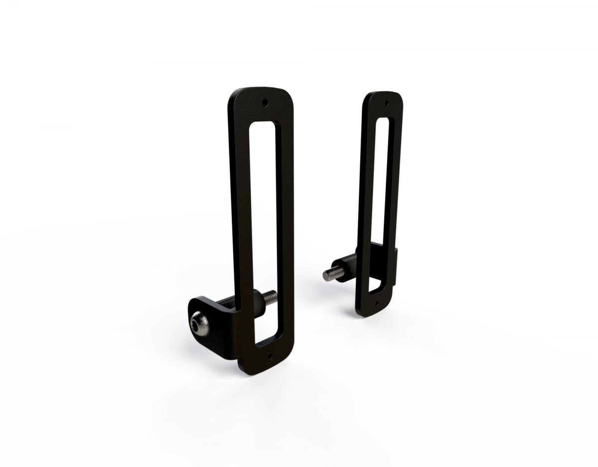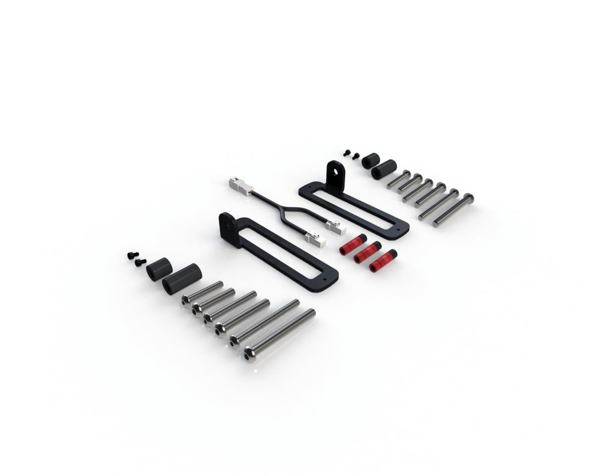 Detta monteringskit är speciellt utformat för att montera ett par DENALI DRL- eller B6-bromsljuspodar 90 grader på valfri M6-monteringspunkt på ditt fordon. De pulverlackerade stålfästena skapar det perfekta fästet för att installera DRL-ljus lågt på din motorcykels framskärm eller installera DRL-ljus som backljus på karosspaneler och ATV-lasthållare. Detta fäste kan också användas för att placera B6-bromsljuspodar på idealisk plats bak på din motorcykel.