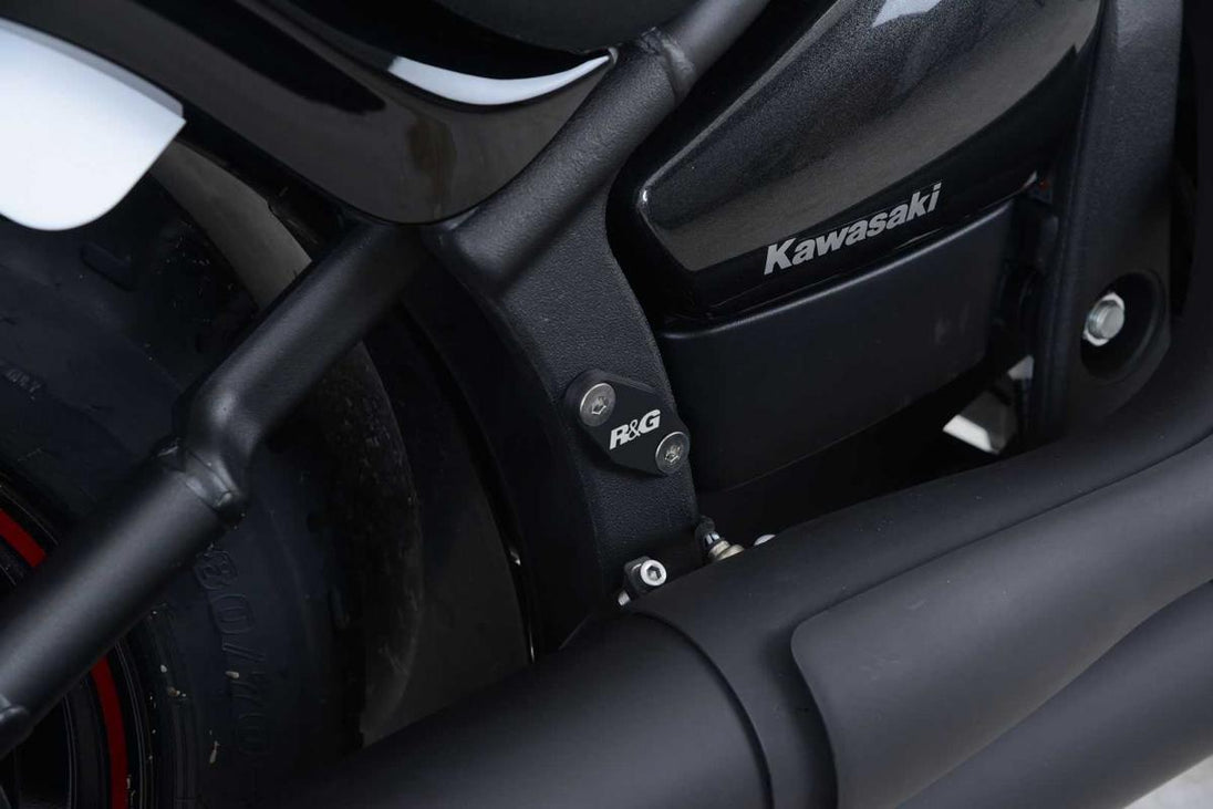 När du har tagit bort fotstöden på baksätet, fyll i hålet som lämnas kvar och täck de annars exponerade hålen i hjälpramen med en R&G-täckplåt. Dessa fotstödsplattor har specialdesignats för att skydda både vänster och höger sida av Kawasaki Vulcan VN900 Custom 07-, VN900 Classic 06- och VN900 Classic LT 11- modellerna. R&G fotstödsplattor är enkla att installera, de skruvas bara fast på plats i de bakre bakre bakre fästena. De täcker de annars exponerade hålen i hjälpramen som, om de lämnas otäckta, kan leda till korrosion av ramen från smuts, vatten och skräp. Ytbehandling: Svart pulverlack och med en vit R&G-logotyp.