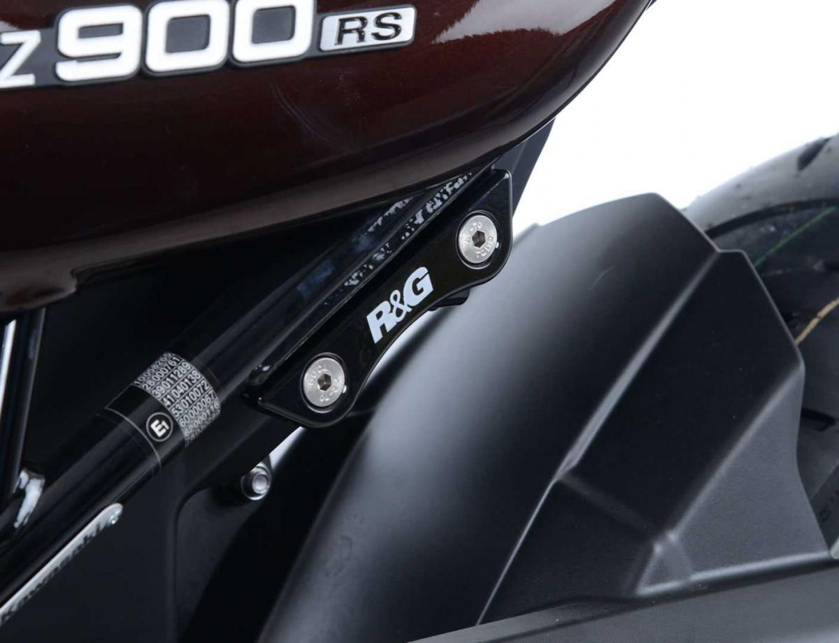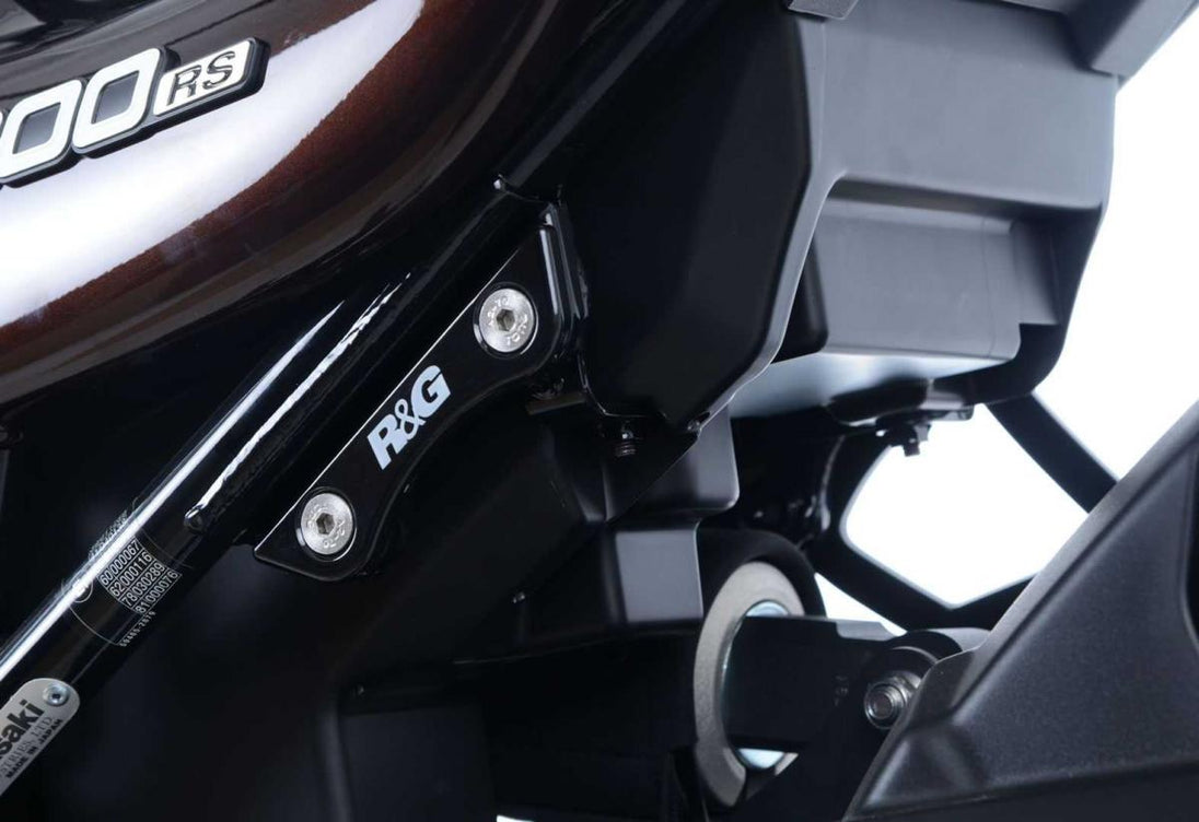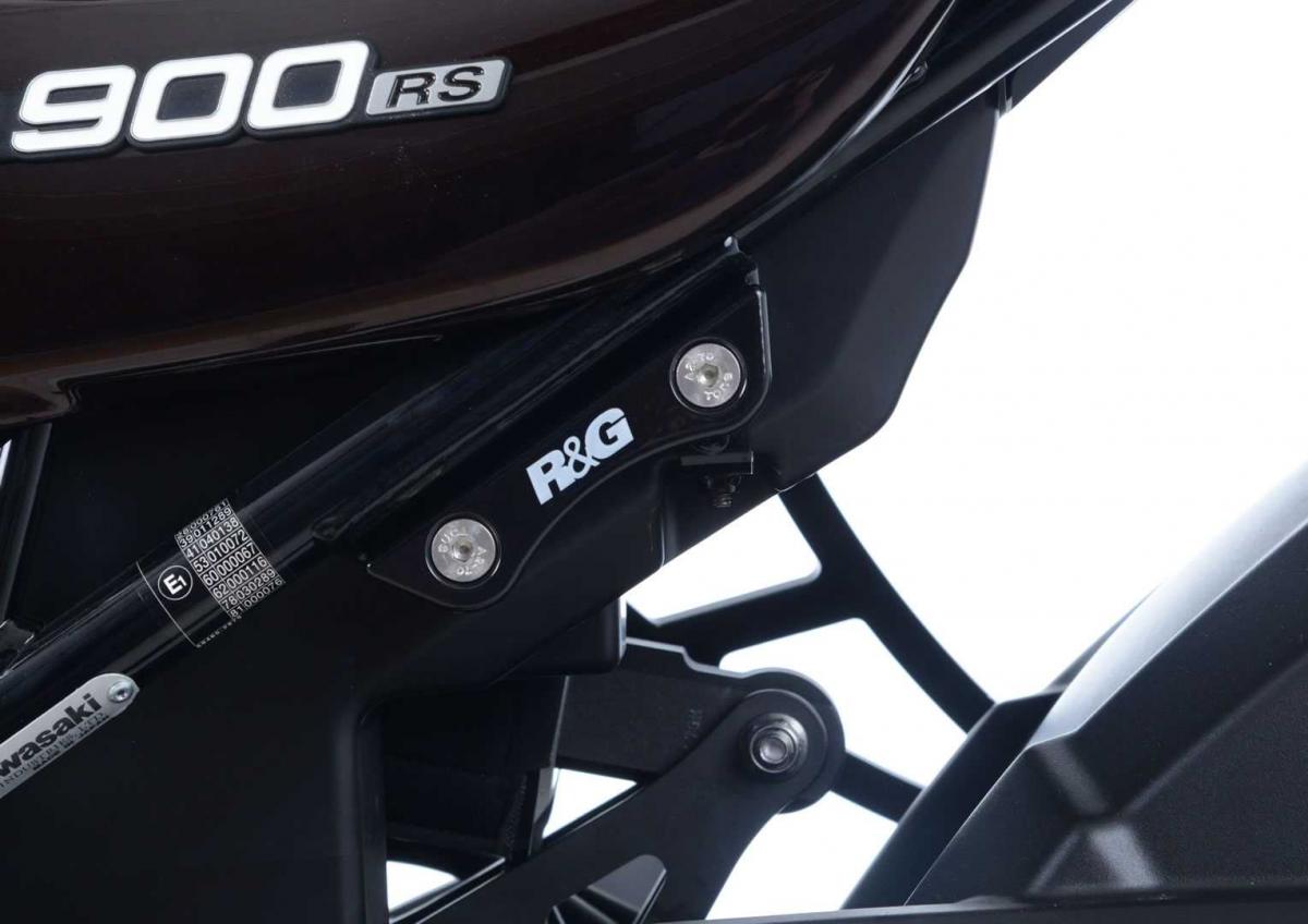 När du har tagit bort fotstöden på baksätet, fyll i hålet som lämnas kvar och täck de annars exponerade hålen i hjälpramen med en R&G-täckplåt. Detta kit finns tillgängligt som en eller flera fotstödstäckplåtar och har specialdesignats för att skydda både vänster och höger sida av Kawasaki Z900 17- och Z900RS 18-modellerna. R&G fotstödstäckplåtar är enkla att installera genom att bara skruva fast dem på plats i de bakre bakre bakre fästena. De täcker de annars exponerade hålen i hjälpramen som, om de lämnas otäckta, kan leda till korrosion av ramen från smuts, vatten och skräp. Ytbehandling: Svart pulverlackering och med en R&G-logotyp.