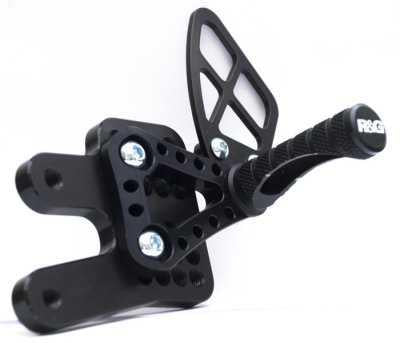 Maximera din potential, finjustera din maskin efter dina exakta behov. R&G Racing Suzuki GSX-R600750 K6-L0 (2006 - 2010) Justerbara bakpartier är frästa ur lättviktsaluminium för hög hållfasthet och hållbarhet. R&G:s justerbara bakpartier ger möjlighet att monteras med racingväxelmönster (1 upp - 5 ner) eller vägväxelsystem som standard (1 ner - 5 upp). Våra bakpartier erbjuder stora justeringsmöjligheter och exakt positionering för att passa varje förare (11 positioner). Utformade för att vara enkla att installera. Pulverlackerade i svart med skarp vit R&G-grafik på pedalerna och spakarna, vilket ger dessa bakpartier ett mycket snyggt utseende. Fotstöden är specialtexturerade för att säkerställa maximalt grepp även i de svåraste situationerna. Komplett monteringskit, inklusive instruktioner, medföljer. Utformade specifikt för Suzuki GSX-R600750 K6-L0 (2006-2010).