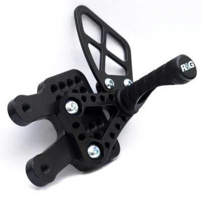 Maximera din potential, finjustera din maskin efter dina exakta behov. R&G Racing Suzuki GSX-R600750 L1 2011- Justerbara bakpartier är frästa ur lättviktsaluminium för hög hållfasthet och hållbarhet. R&G:s justerbara bakpartier ger möjlighet att monteras med racingväxelmönster (1 upp - 5 ner) eller vägväxelsystem som standard (1 ner - 5 upp). Våra bakpartier erbjuder stora justeringsmöjligheter och exakt positionering för att passa varje förare (11 positioner). Utformade för att vara lätta att installera. Pulverlackerade i svart med skarp vit R&G-grafik på pedalerna och reglagen, vilket ger dessa bakpartier ett mycket snyggt utseende. Fotstöden är speciellt texturerade för att säkerställa maximalt grepp även i de mest knepiga situationerna. Komplett monteringskit, inklusive instruktioner, medföljer. Utformade specifikt för Suzuki GSX-R600750 L1 2011-.