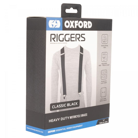 Leverantör: Oxford Oxford Riggers Classic Svart Oxford Riggers är superstarka och finns nu i en rad nya utföranden. Viktiga funktioner - Nylontänder som skyddar kläderna mot fasthakning - Extra starka klämmor - Justerbar storlek - 400–750 mm längd - Extra bred 50...Ordinarie pris 269 krOrdinarie pris 269 kr