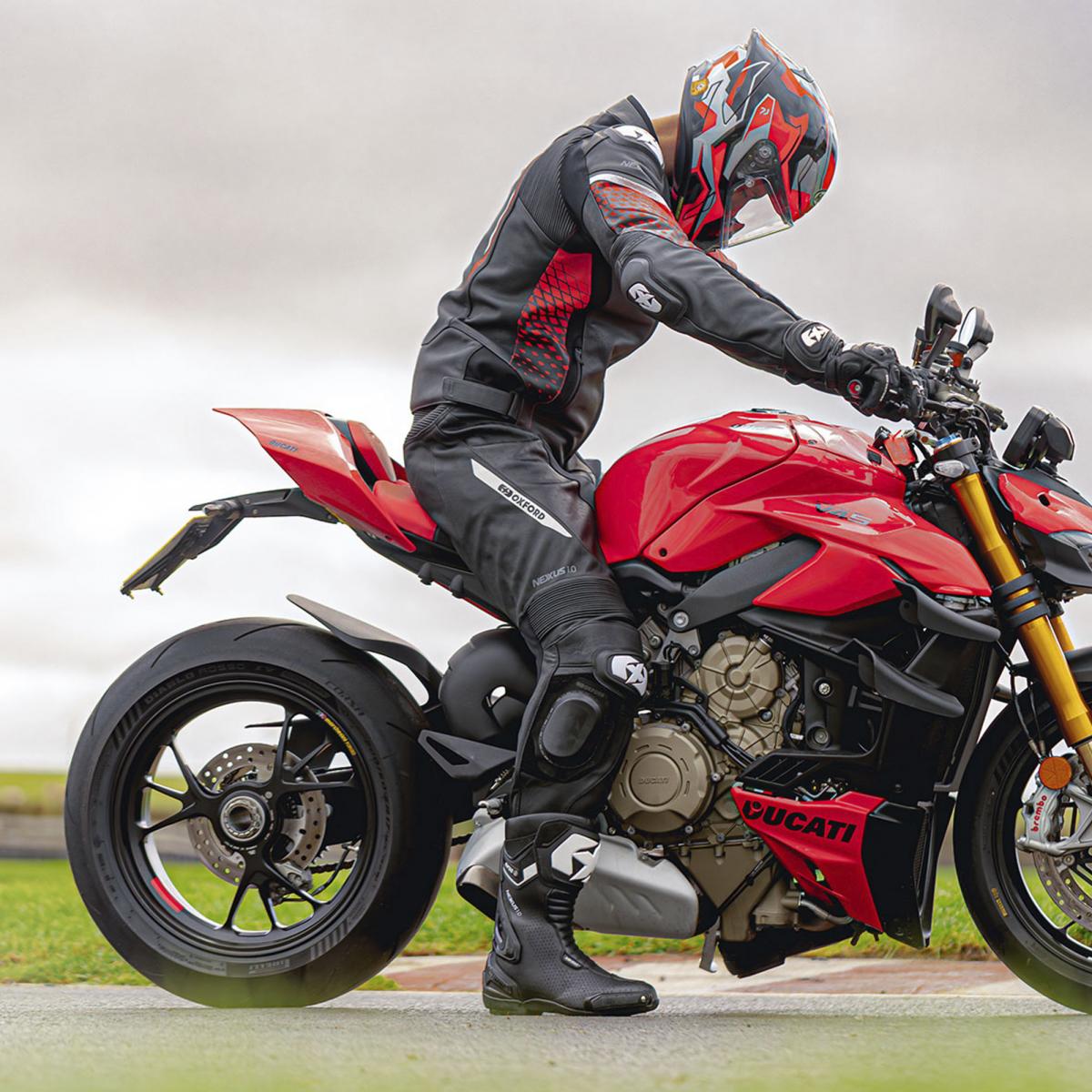 NEXUS är designad och konstruerad från grunden och är kulmen på fyra års forskning och utveckling och mer än 40 års erfarenhet sedan förare började köra runt på banorna i läderkläder med Oxford-märket. Genom att kontinuerligt ta till oss insikter och feedback från toppförare under denna tid har vi kunnat utveckla produkter som trotsar förväntningarna och tänjer på gränserna för att leverera vårt löfte: att göra livet på motorcyklar bättre. NEXUS föddes på banan och släpptes lös på gatorna. NEXUS-läderjackan erbjuder CE AAA-klassat skydd, interna CE nivå 2-skydd på axlar och armbågar, externa slitstarka TPU-koppar på axlar och armbågar och specialdesignade stretchzoner på rörelsekritiska områden. Matchande stövlar och handskar finns tillgängliga. Skydd - CE AAA-certifierad (EN 17092-2:2020) - CE Level 2-skydd på axlar och armbågar (EN 1621-1:2012) - Externa TPU-axel- och armbågsskydd för stöt- och nötningsbeständighet - Ryggskyddsficka (skydd finns separat) - YKK långa och korta anslutningsdragkedjor möjliggör fastsättning av jackan för säker och skyddande fäste Klimatreglering - Perforeringszoner på bål och överarmar - Stretchig textil förbättrar luftflödet och luftcirkulationen - Andningsbart meshfoder Tyg och konstruktion - 1,2 mm äkta kohud - Läderförstärkningar vid stöt- och nötningszoner - Mycket slitstark stretchig textil - Förstärkta säkerhetssömmar - Luftmeshfoder i kragen för ökad komfort och andningsförmåga Justerbarhet och passform - D-ringsjusteringsflikar i midjan med greppdetaljer - Stretchpaneler i dragspelsläder på övre delen av ryggen och ovanför armbågarna ger förbättrad flexibilitet - Stora stretchpaneler på axlar, insida ärm och midja för förbättrad passform och rörelsefrihet på cykeln - YKK halvautomatiska låsdragkedjor vid ärmöppningen - Stretchigt invändigt meshfoder som fungerar tillsammans med yttre stretchzoner - Vindtäta dragkedjeskydd vid Manschettöppningarna och huvuddragkedjan Förvaring - 2 sidfickor med dragkedja - Innerficka med napoleon - 2 innerfickor Detaljer - Präglat Oxford-märke i läder - 360 graders reflexer på bröst, axlar och rygg - Dragkedjor i 100 % läder för enkel justering med handskar på - Dold YKK-dragkedja fram för att förhindra repor på tanken Läs mer om våra cykelkläder genom att besöka vår webbplats: Försäkran om överensstämmelse Klicka här för att se överensstämmelsescertifieringar