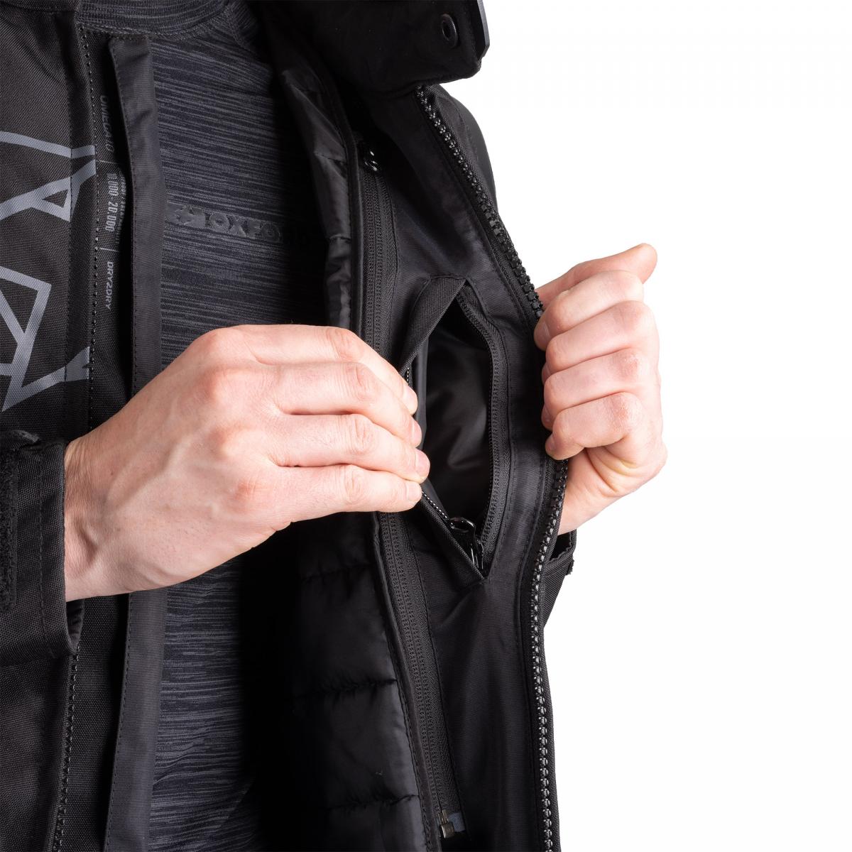 Den vattentäta Omega 1.0-jackan är fullpackad med sportig styling och har en avancerad specifikation, inklusive ett vattentätt och andningsbart Dry2Dry-membran, CE-nivå 2 axel- och armbågsskydd, TPU-axelslidare och ventilationsdragkedjor för cykling i varmt väder. Omega erbjuder tre byxfästen för att garantera en säker körning oavsett vad du har på dig: 1. dragkedja längs hela omkretsen 2. kort dragkedja 3. bältesfästen (för jeansbärare). Jackan kan anpassas till varmare och kallare klimat tack vare den avtagbara termovästen och dragkedjeförsedda ventilationsöppningarna på övre delen av bröstet. Ett sömförseglat Dry2Dry-membran med ett vattentryck på 10 000 mm ger effektivt skydd i vått väder. Cykla med självförtroende med Omega 1.0 Dry2Dry-jackan. Skydd - CE AA-certifierad (EN 17092-3:2020) - CE nivå 2 axel- och armbågsskydd (EN 1621-1:2012) - Ryggskyddsficka - Utvändiga TPU-axelskydd för stöt- och nötningsbeständighet - 360 graders reflekterande tryck för synlighet i mörkret - Lång och kort YKK-dragkedja möjliggör fastsättning av byxor för säker och skyddande fästning - Bälteshällor för säker och skyddande fästning med jeans Klimatkontroll - Dry2Dry vattentät och andningsbar konstruktion - 10 000 mm vattentäthet, 20 000 g/m2/24 timmars andningsförmåga - Ventilationsdragkedjor på övre delen av bröstet - Avtagbar termoväst Tyg och konstruktion - HD-Poly: Ytterskal av högdensitetspolyester - Softshell på sidorna av torso och inre ärmar för vind- och vattenavvisande - Rullad neoprenkrage för komfort - Förstärkta spänningspunkter med tränssömmar Justerbarhet och passform - Justering av tryckknappar på överarmen - Justering av kardborreband i midjan - Tryckknappsfäste i kragen - Manschett med kardborrebandsjustering - Längre nederkant bak för Förvaring i nedre delen av ryggen - 2 handvärmarfickor med dragkedja - Invändig napoleonficka med dragkedja - Invändig förseglad ficka med kardborreknäppning