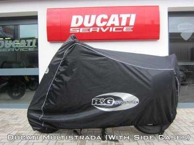R&G Adventure Outdoor Cover passar på äventyrs- och touring-motorcyklar och har designats om för att inkludera många nya funktioner. Baserat på vår ursprungliga prisbelönta Superbike Cover-design och tillverkat av samma vattentäta material av samma kvalitet, har överdraget även elastisk kant och magremmar som standard som säkerställer att överdraget sitter på plats och hindrar vind, lera eller vatten från att komma in i överdraget samt säkerställer en tät passform runt basen. Kedjeöglor fram och bak för säkerhetsanordningar täckta av en kardborrebandsflik för att säkerställa att överdraget är helt vattentätt, reflekterande logotyper med hög synlighet och kantpiping för extra synlighet på natten och inkluderar ett genomskinligt PVC-bakfönster som gör att registreringsskylten är synlig men har en invändig gardin som gör att den kan täckas. Vårt Superbike-överdrag tilldelades Best Buy av Ride Magazine (8 december-numret) med hela 2121 poäng - vad mer kan man begära! Och vinnare av Årets Produkt 2010 av BikeChatter. Funktioner inkluderar: HÅLLBART VATTENTÄTT YTTRE SKIKTER FRÄMRE KEDJEÖGLAFLA ELASTIKERAD KANTNING LOGOTYP OCH RÖR MED HÖG SYNLIGHET MAGREM SVÄNGSPEGELVENTILATIONER BAKRE REGISTRERINGSSKYLTFÖNSTER MED FLAK Kan täcka de största motorcyklarna även med cykelväskorna kvar på motorcykeln! Inklusive BMW R1200GS, Yamaha Super Tenere, Ducati Diavel, BMW K1600, Triumph Tiger Explorer 1200, Honda Varadero, Honda Crosstourer (sidofodral måste tas bort) och NC700 plus många fler.
