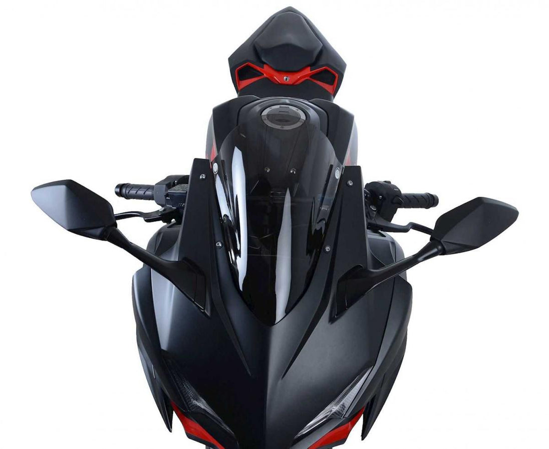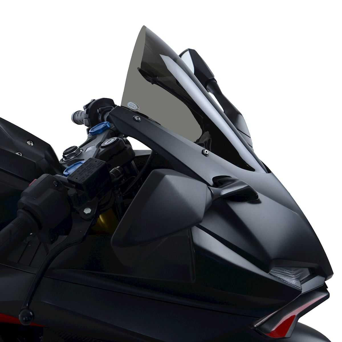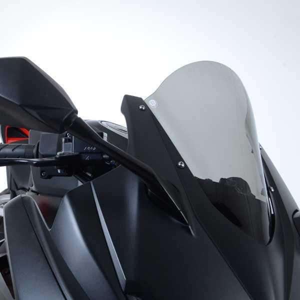 R&G Racing-skärmar har en förstärkt, luftflödeshöjande design, vilket innebär att föraren får ett märkbart ökat vindskydd samtidigt som de optimerar både cykelns och förarens aerodynamik. Racing-skärmarna är tillverkade av kraftig 3 mm polykarbonat, vilket ger föraren den allra bästa optiska klarheten som finns, trots den fantastiska "rökta" färgfinishen. Inte bara det, utan de är praktiskt taget oförstörbara, till skillnad från sina (ofta tunnare) akrylmotsvarigheter. Deras reptålighet förbättras också av detta materialval.