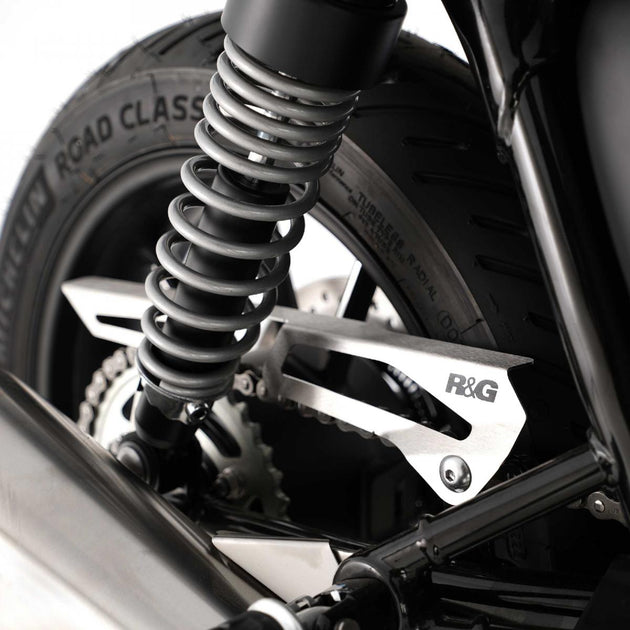 Kedjeskydd i borstat rostfritt stål, Triumph Thruxton 1200 / 1200R / Speed Twin 1200 19-