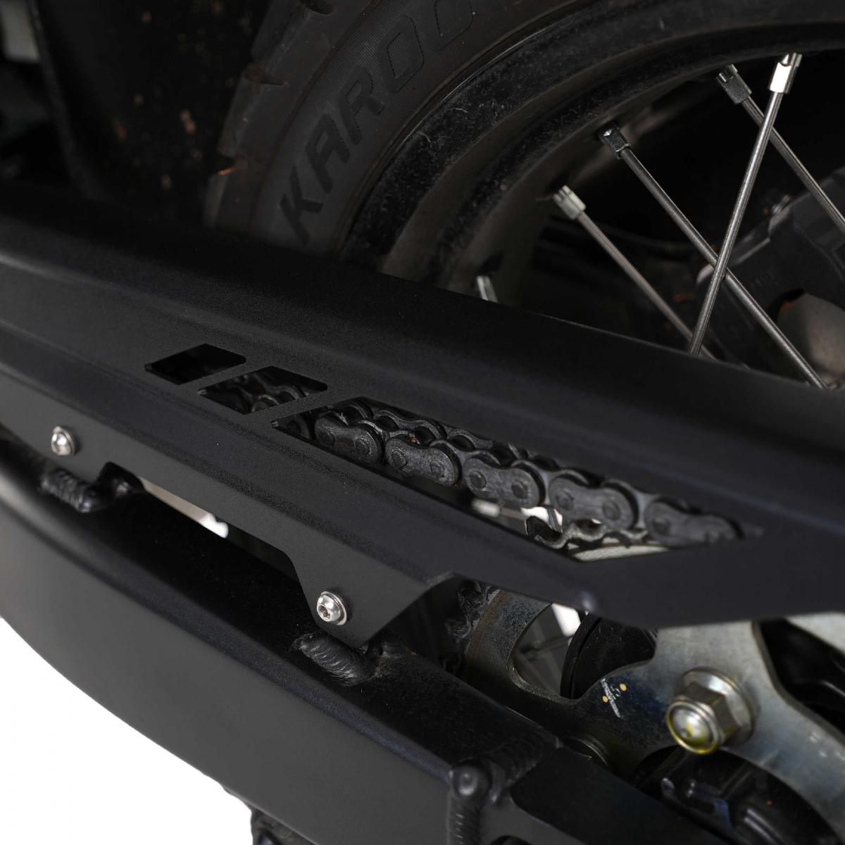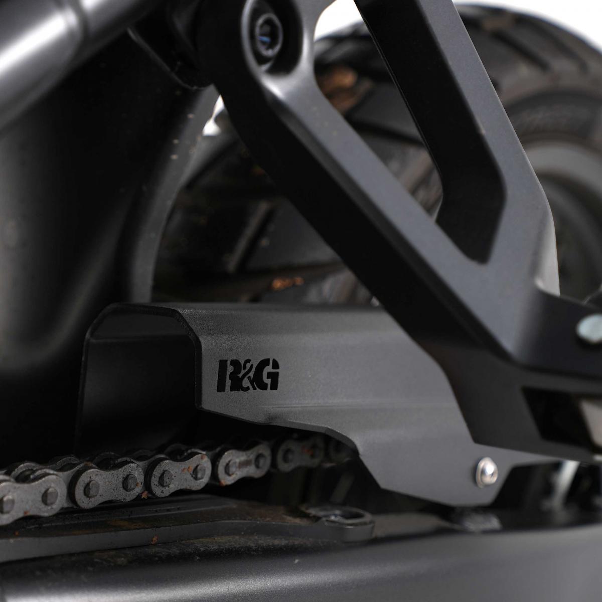 R&G kedjeskydd säkerställer att kedjan och drevet är helt skyddade och förhindrar att material (smörjmedel) fladdrar upp från kedjan och ner på däcken (eller på cykelns slitage!). Detta R&G kedjeskydd är tillverkat av aluminium enligt flygplansspecifikation och är enkelt att installera med hjälp av befintliga fästen. Det är lackerat med svart pulverlackering vilket ger en högkvalitativ, hållbar och långvarig finish som också ser fantastisk ut. Detta kedjeskydd är speciellt utformat för Honda XL 750 Transalp 23-modellerna.