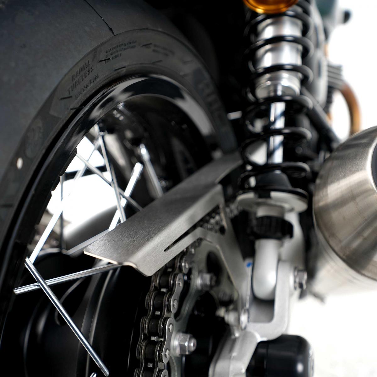 Kedjeskydd i borstat rostfritt stål, Triumph Thruxton 1200 / 1200R / Speed Twin 1200 19-
