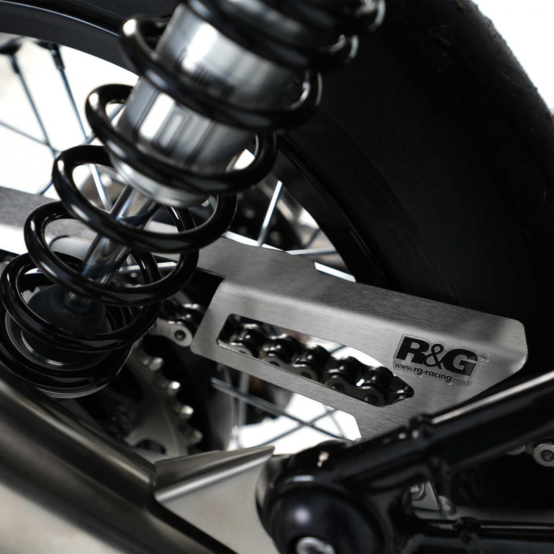 Detta R&G-kedjeskydd säkerställer att kedjan och drevet är helt skyddade och förhindrar att material (smörjmedel) fladdrar upp från kedjan och ner på däcken (eller på cykelns slitage!). Detta R&G-kedjeskydd är tillverkat av rostfritt stål och är enkelt att installera med hjälp av befintliga fästen. Det borstade ytskiktet ger en högkvalitativ, hållbar och långvarig finish som också ser fantastiskt ut och kommer att klara de äventyr och turer som cykeln är designad för. Kompatibel med Triumph Thruxton 1200 16-, Thruxton 1200R 16- och Speed Twin 1200 19-21-modellerna.
