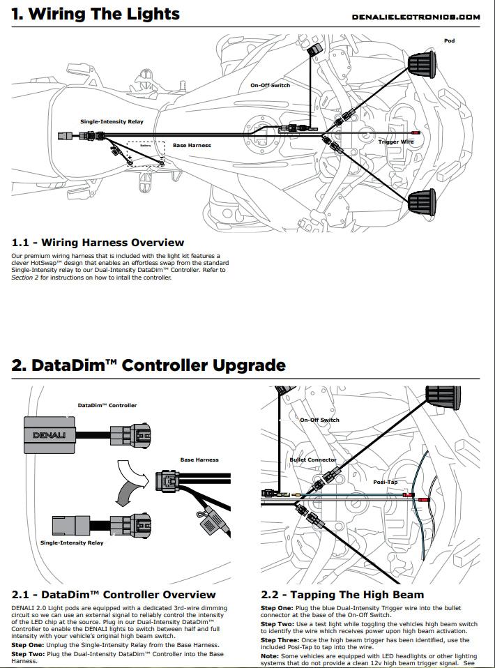 Denna DENALI DataDim Dual-Intensity Controller gör att DENALI-lamporna kan växla mellan halv och full intensitet med din bils ursprungliga helljusbrytare. Alla DENALI 2.0-ljuspodar är utrustade med en dedikerad dimmerkrets med 3:e tråden så att vi kan använda en extern signal för att tillförlitligt styra LED-chippets intensitet vid källan.