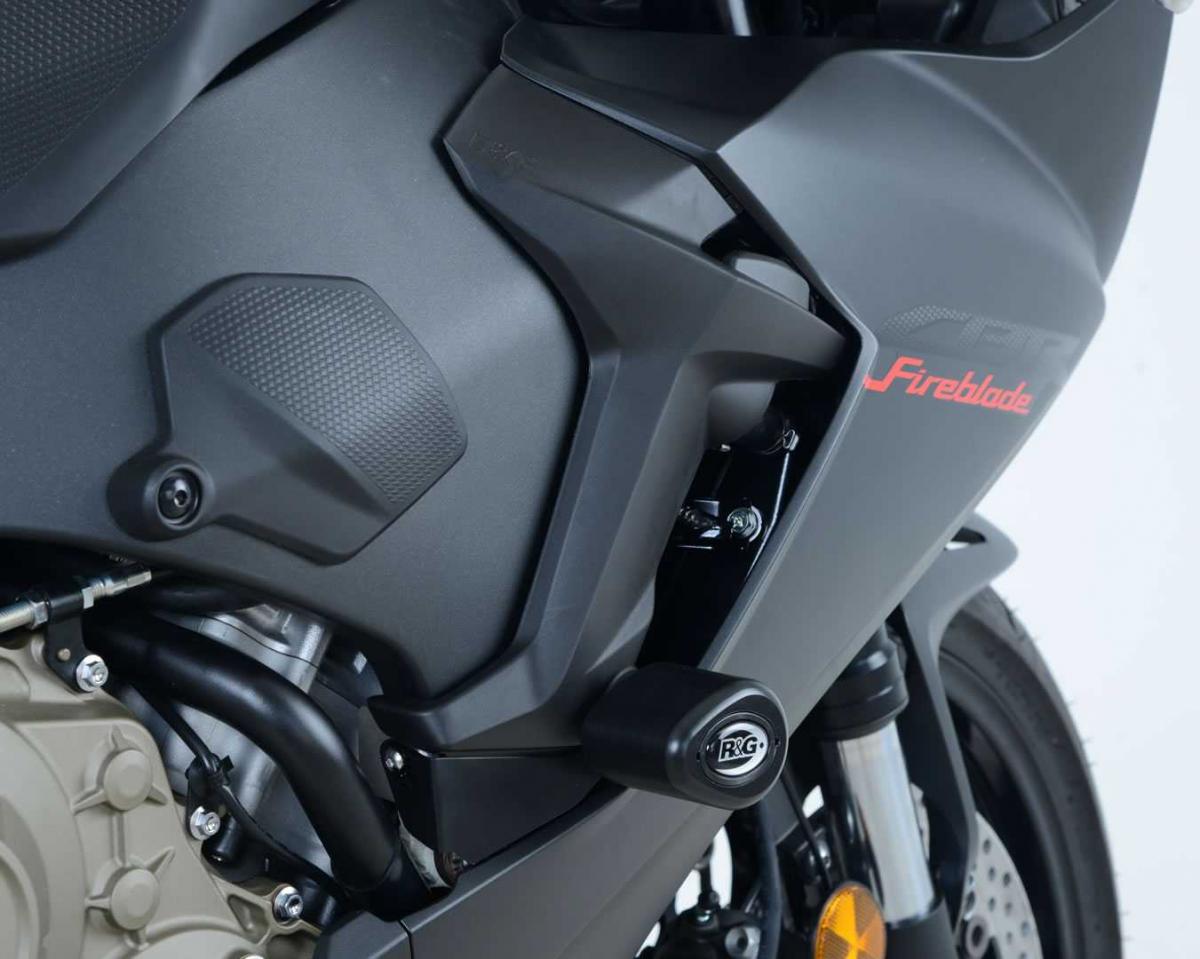 R&G Aero Crash Protectors har våra snygga, aerodynamiska Aero Bobbins och finns i svart eller vitt. Detta R&G Aero Crash Protector-kit har våra snygga Aero Bobbins (finns i svart eller vitt) och förborrade, formsprutade reservfyllningspaneler. Lämplig för CBR1000RR RR SP RR SP2 17-19-modeller, har detta kit specialdesignats för att undvika behovet av att borra några kåpor. Byt bara ut de svarta fyllningspanelerna mot de medföljande förborrade panelerna, som har expertskulpterats för att möjliggöra en noggrann och problemfri installation.