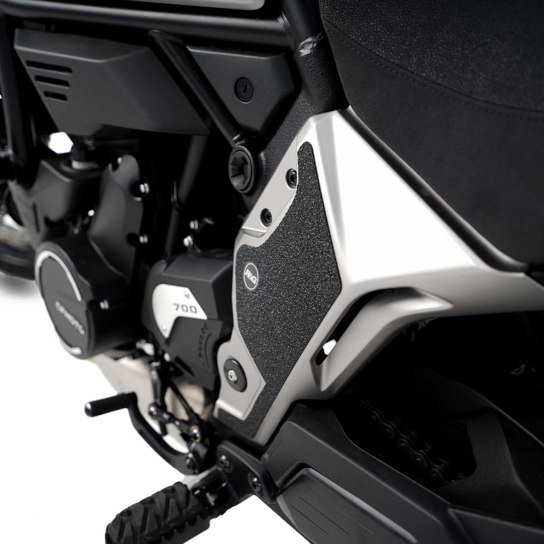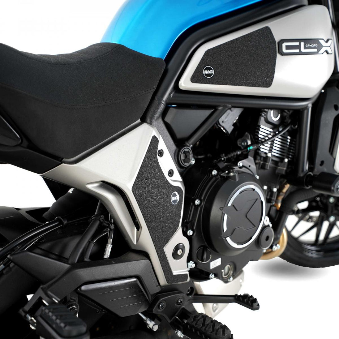 Detta 4-delade stövelskyddskit har specialdesignats för CFMoto 700CL-X Heritage 21- och Adventure 23-modellerna och skyddar svingarmen från oönskade repor och märken. R&G:s stövelskyddskit finns tillgängliga för en mängd olika motorcykelstilar och märken, med nya applikationer som regelbundet släpps. Den unika R&G:s stövelskyddsstruktur har specialdesignats för att vara hållbar och ger föraren en buffert mellan stöveln och de exponerade områdena på svingarmen, vilka (ibland) kan komma i kontakt med varandra under kurvtagning, vilket orsakar slitage och oönskade skador på svingarmen eller stövlarna (båda dyra att reparera!). Observera: R&G:s stövelskydd levereras nu med ett självhäftande emblem med 25 mm diameter. Tillverkat i Storbritannien.