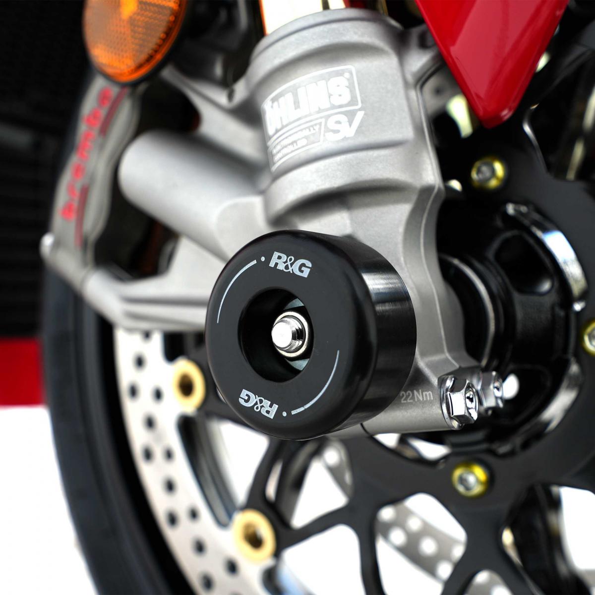 De är enkla att installera och hjälper till att eliminera skador på framgaffeln, gaffelbottnarna och bromsoken vid en krock eller fall. Dessa gaffelskydd passar Honda CBR1000RR-R (SP) 20-modellen.