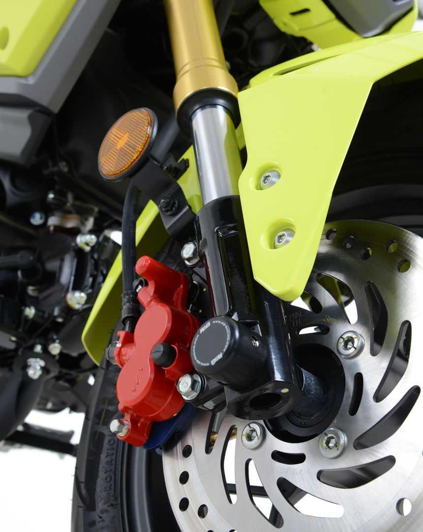 Dessa gaffelskydd passar Honda CBR125R (11-), Honda CBF125 (09-), Honda MSX125 (13-), Honda GROM 125 (13-), Honda Monkey (18-), Dax 125 22- och Kymco VSR125(i) 19-. De hjälper till att eliminera skador på framgaffeln vid fall eller krasch genom att hålla kärnkomponenterna borta från klippaggregatet.
