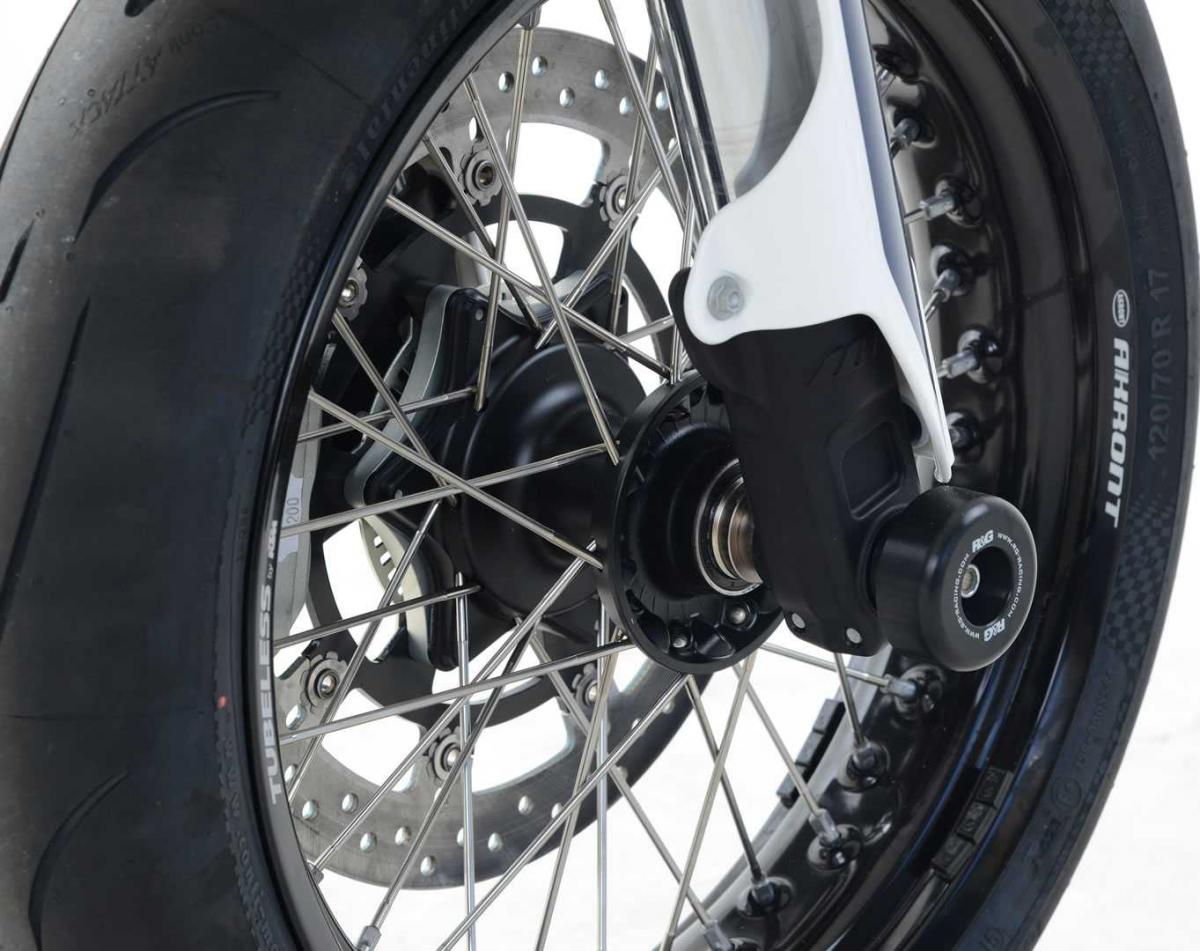 Dessa gaffelskydd passar för Husqvarna 701 Supermoto 16-24-modellen. De är enkla att installera och hjälper till att eliminera skador på framgaffeln, gaffelbottnarna och bromsoken vid en krock eller fall.