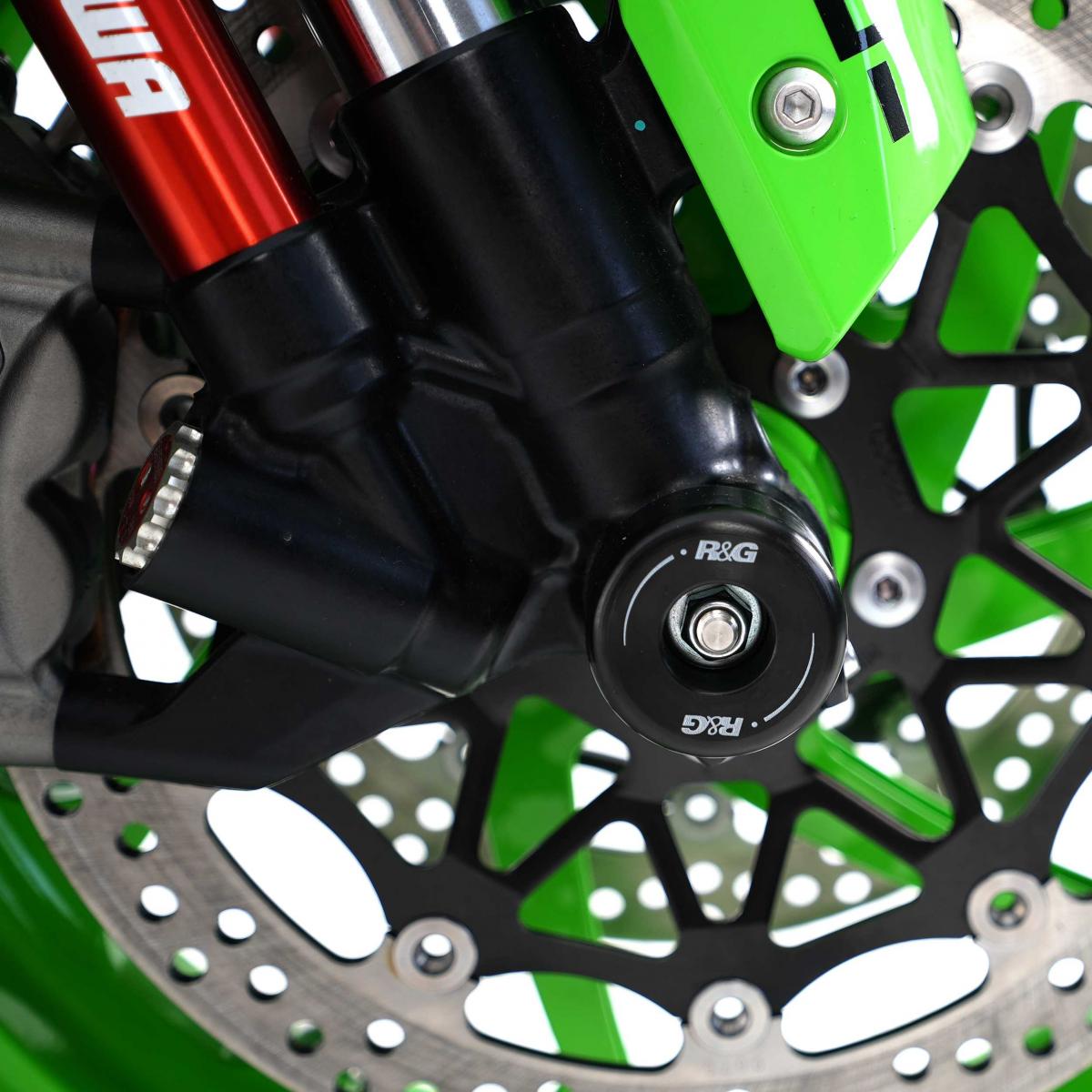 Dessa gaffelskydd passar Kawasaki ZX10-R 16- och ZX-10RR 21-modellerna. De är enkla att installera och hjälper till att eliminera skador på framgaffeln, gaffelbottnarna och bromsoken vid en krock eller fall.