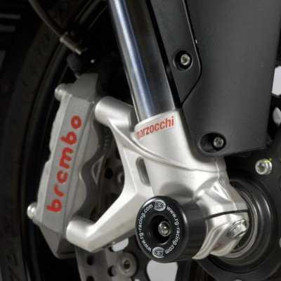 Dessa gaffelskydd passar MV Agusta F4RR 10- (Ohlins-gafflar). De är enkla att installera och hjälper till att eliminera skador på framgaffeln, gaffelbottnarna och bromsoken vid en krock eller fall. Denna modell levereras även med distanser för framhjulet för att täcka den exponerade framhjulsaxeln som är synlig mellan gaffeln och hjulet.