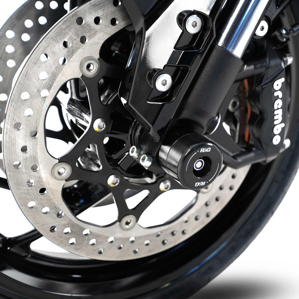 De är enkla att installera och hjälper till att eliminera skador på framgaffeln, gaffelbottnarna och bromsoken vid en krock eller fall. Dessa gaffelskydd passar Suzuki GSX - S1000 GX 24-.