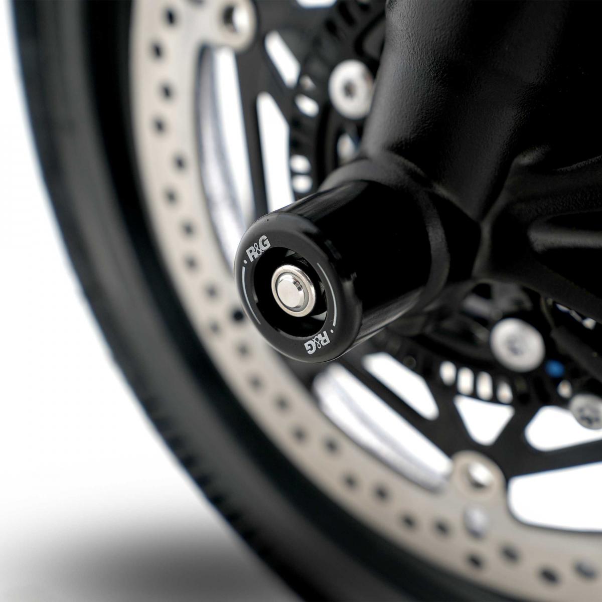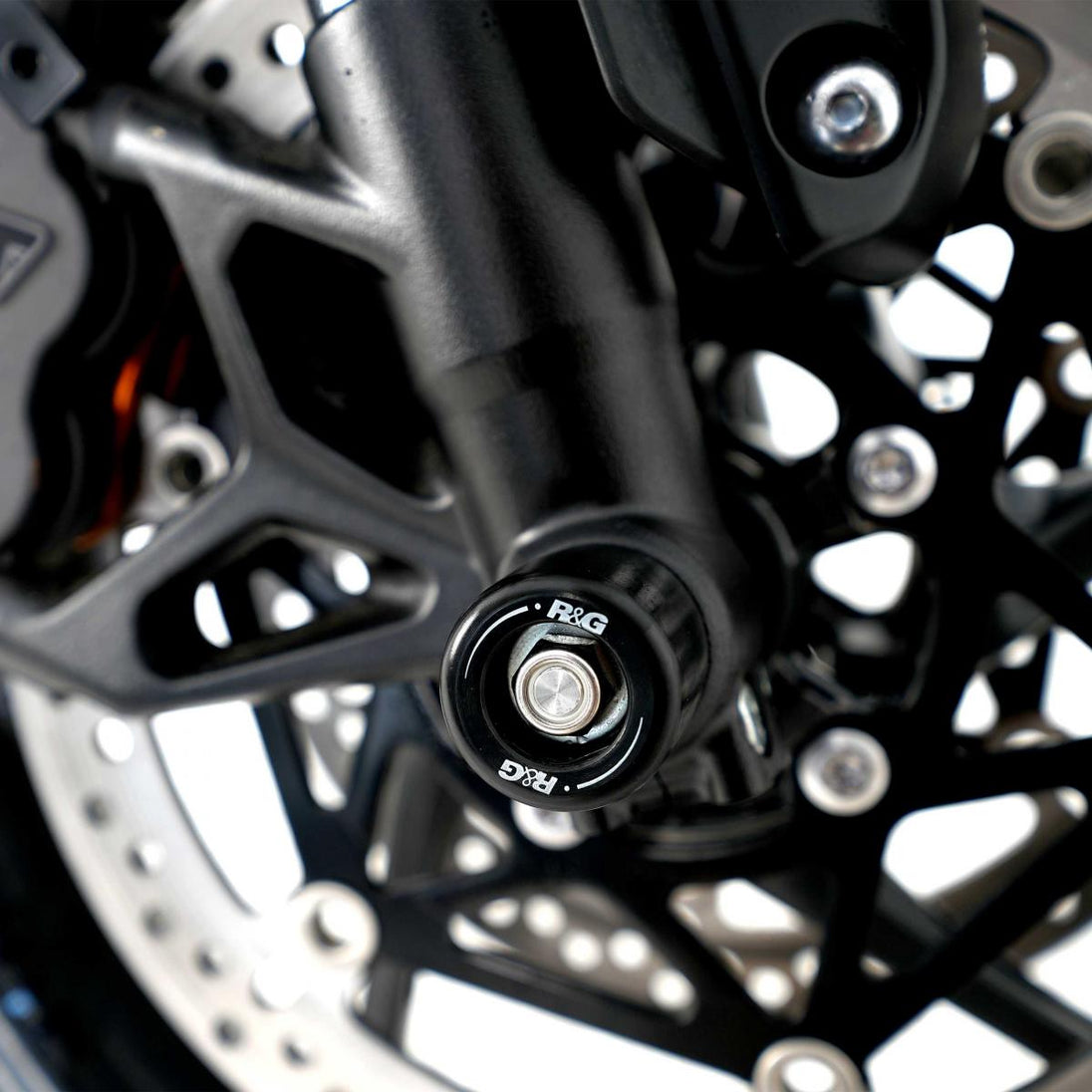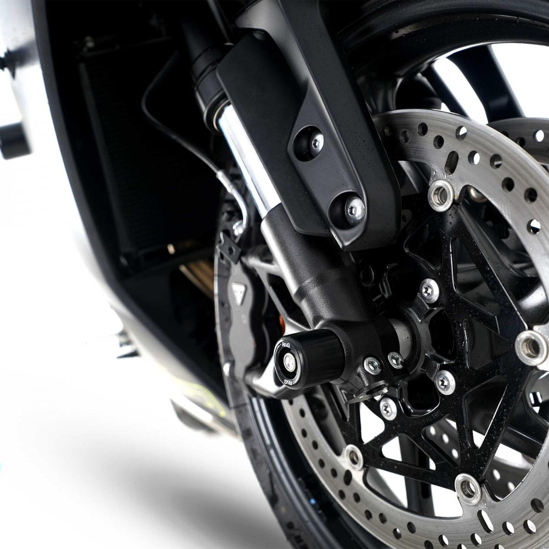 De är enkla att installera och hjälper till att eliminera skador på framgaffeln, gaffelbottnarna och bromsoken vid en krock eller fall. Dessa gaffelskydd passar till Triumph Street Triple 765 RSRS 17-, Daytona 660 24- och Daytona Moto2™ 765 20- modellerna.