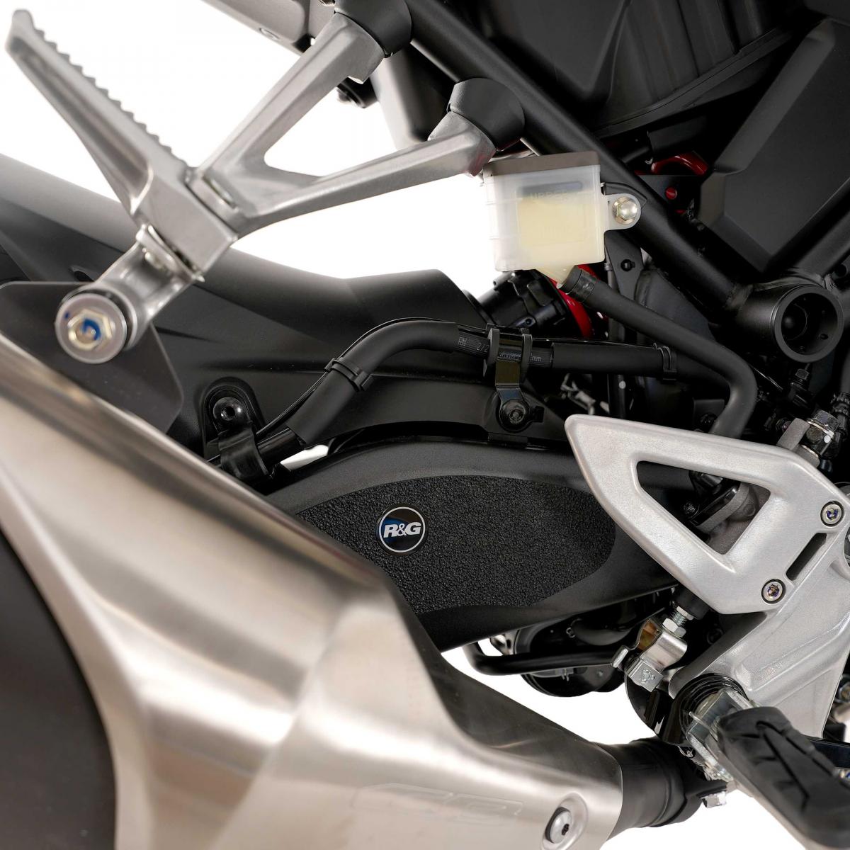 Detta tvådelade stövelskyddskit har specialdesignats för Honda CB300R 18-24 och CB125R 18-24 modeller. R&G:s stövelskyddskit finns tillgängliga för en mängd olika motorcykelstilar och märken, med nya applikationer som regelbundet släpps. Den unika R&G-strukturen har specialdesignats för att vara hållbar och ger föraren en buffert mellan stöveln och de exponerade områdena på svingarmen, vilka (ibland) kan komma i kontakt med varandra under kurvtagning, vilket orsakar slitage och oönskade skador på svingarmen eller stövlarna (båda dyra att reparera!). Tillverkad i Storbritannien.