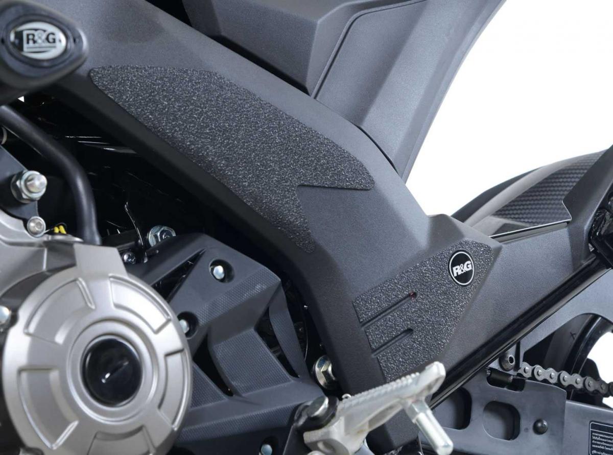 Detta 4-delade stövelskyddskit har specialdesignats för Kawasaki Z125 Z125 Pro 16-modellerna. R&G:s stövelskyddskit finns tillgängliga för en mängd olika motorcykelstilar och märken, med nya applikationer som regelbundet släpps. Den unika R&G-strukturen har specialdesignats för att vara hållbar och ger föraren en buffert mellan stöveln och de exponerade områdena på svingarmen, vilka (ibland) kan komma i kontakt med varandra under kurvtagning, vilket orsakar slitage och oönskade skador på svingarmen eller stövlarna (båda dyra att reparera!). Tillverkad i Storbritannien.