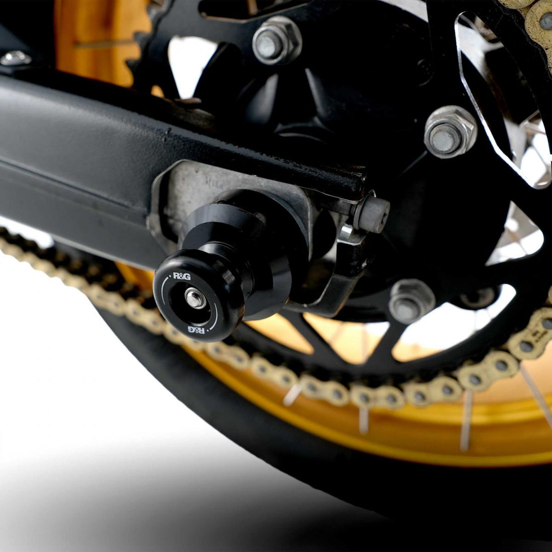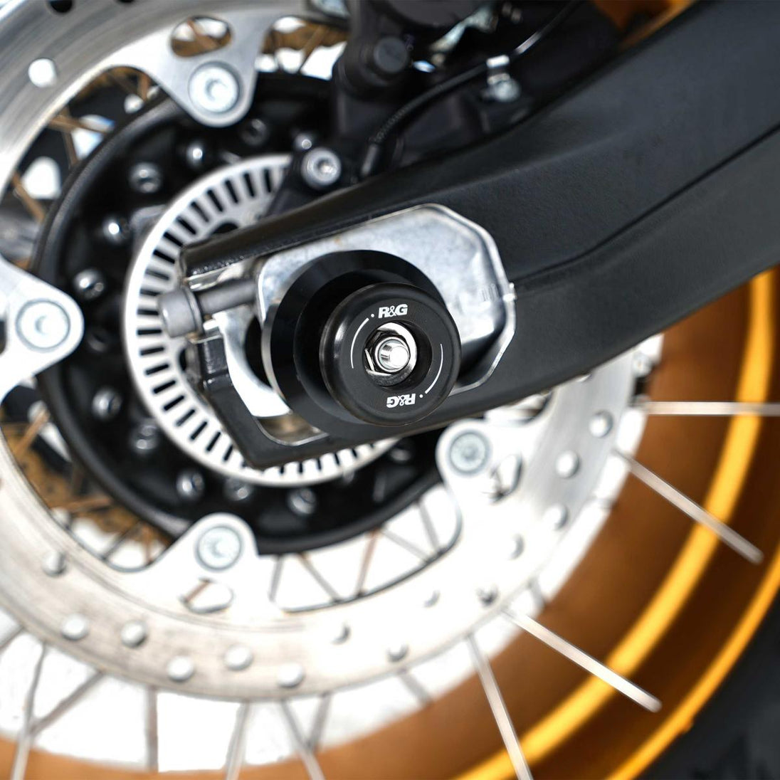Dessa spindelglidare monteras direkt genom den bakre spindelaxeln på BMW F 900 R XR 20, F900GS 24 - och ger både krockskydd till de bakre komponenterna, skyddar svingarmen och komponenter, som bromsar och drivlina, vid en krock eller ett fall, men fungerar också som spolar för paddockstället, vilket gör att motorcykeln kan lyftas upp på ett bakre paddockställ för rengöring och underhåll. Det bästa av två världar!