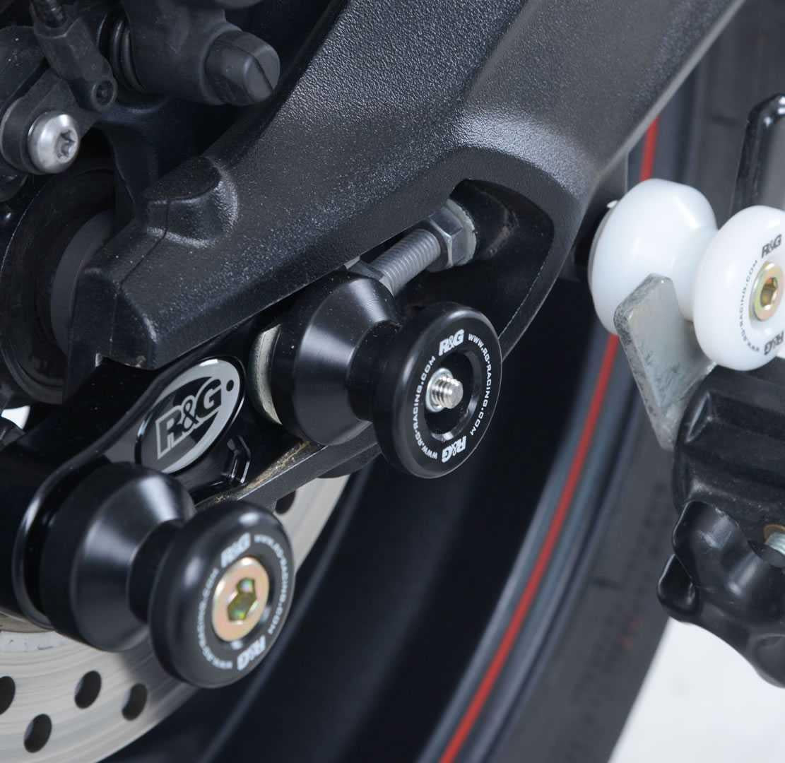 Dessa R&G-spindelreglage passar Triumph Daytona 675, Triumph Daytona Moto2™ 765 20-, Street Triple 07- och Street Triple R 08-. R&G-spindelreglage monteras direkt genom den bakre spindeln och ger både krockskydd till de bakre komponenterna, skyddar svingarmen och komponenter, som bromsar och drivlina, vid en krock eller ett fall, men fungerar även som spolar för paddockstället, vilket gör att motorcykeln kan lyftas upp på ett bakre paddockställ för rengöring och underhåll. Det bästa av två världar!