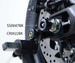 Dessa spindelglidare monteras direkt genom den bakre spindelaxeln på Yamaha TMAX 530 17 och TMAX 560 20 – de ger både krockskydd till de bakre komponenterna, skyddar svingarmen och komponenter, som bromsar och drivlina, vid en krock eller ett fall, men fungerar också som spolar för paddockstället, vilket gör att motorcykeln kan lyftas upp på ett bakre paddockställ för rengöring och underhåll. Det bästa av två världar!