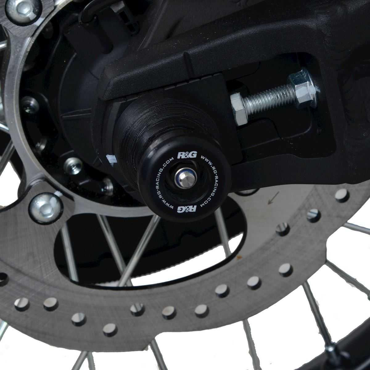 Dessa spindelglidare monteras direkt genom den bakre spindelaxeln på Zero FX 19 och DSR 19 och ger både krockskydd till de bakre komponenterna, skyddar svingarmen och komponenter, som bromsar och drivlina, vid en krock eller ett fall, men fungerar också som bobiner för paddockstället, vilket gör att cykeln kan lyftas upp på ett bakre paddockställ för rengöring och underhåll. Det bästa av två världar!