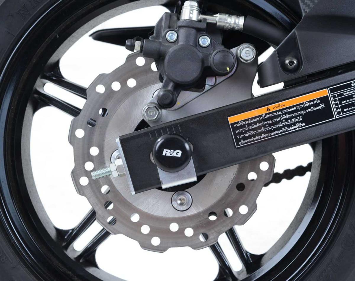 Dessa svingarmsskydd, för Kawasaki Z125 Z125 Pro 16-modeller, fästs på vardera änden av bakhjulsaxeln. Installationen tar bara några minuter. Deras design hjälper till att hålla kärnkomponenter som finns på och runt svingarmsområdet, såsom bakre bromsok, skiva, bakdrev och svingarm, lyfta från marken, utom fara vid en krock, fall eller glidning. Tillverkade av samma högkvalitativa krocktåliga material som används i våra prisbelönta Aero Crash Protectors för att säkerställa maximalt skydd. Säljs i par.