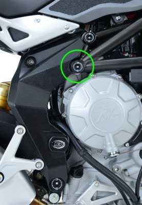 Ramplugg, ENDAST HÖGER (nedre spaljéram), MV Agusta F3 675/800, Rivale 800, Dragster 800. Bakre spaljéram (V eller H) eller höger mittramsboss, Brutale 1090 13-/1090R/1090RR