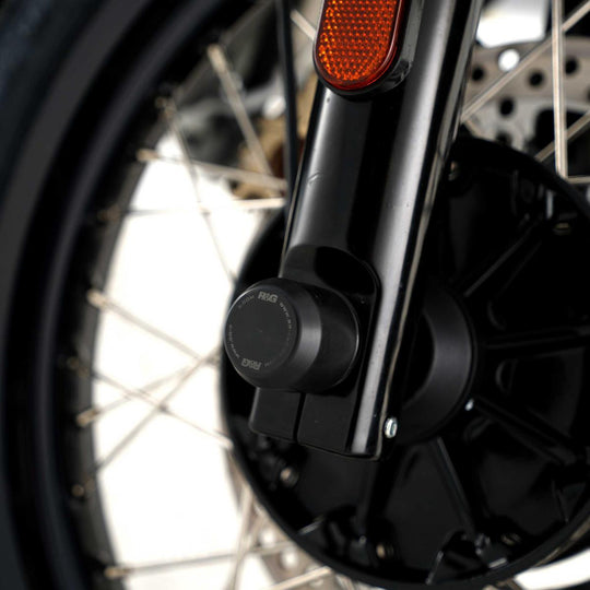 De är enkla att installera och hjälper till att eliminera skador på framgaffeln, gaffelbottnarna och bromsoken vid en krock eller fall. Dessa gaffelskydd passar till modellen Royal Enfield Interceptor 650 ’19- och Continental GT 650 ’19-.Ordinarie pris 619 krOrdinarie pris 619 kr -