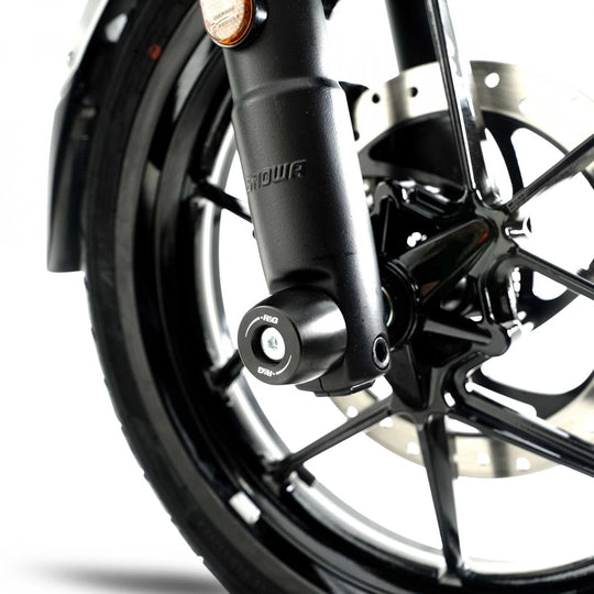De är enkla att installera och hjälper till att eliminera skador på framgafflarna, gaffelbottnarna och bromsoken vid en krock eller ett fall. Dessa gaffelskydd APEX passar Royal Enfield Himalayan 450 24-Guerrilla 450 24-, samma pålitliga skydd,...Ordinarie pris 809 krOrdinarie pris 809 kr -