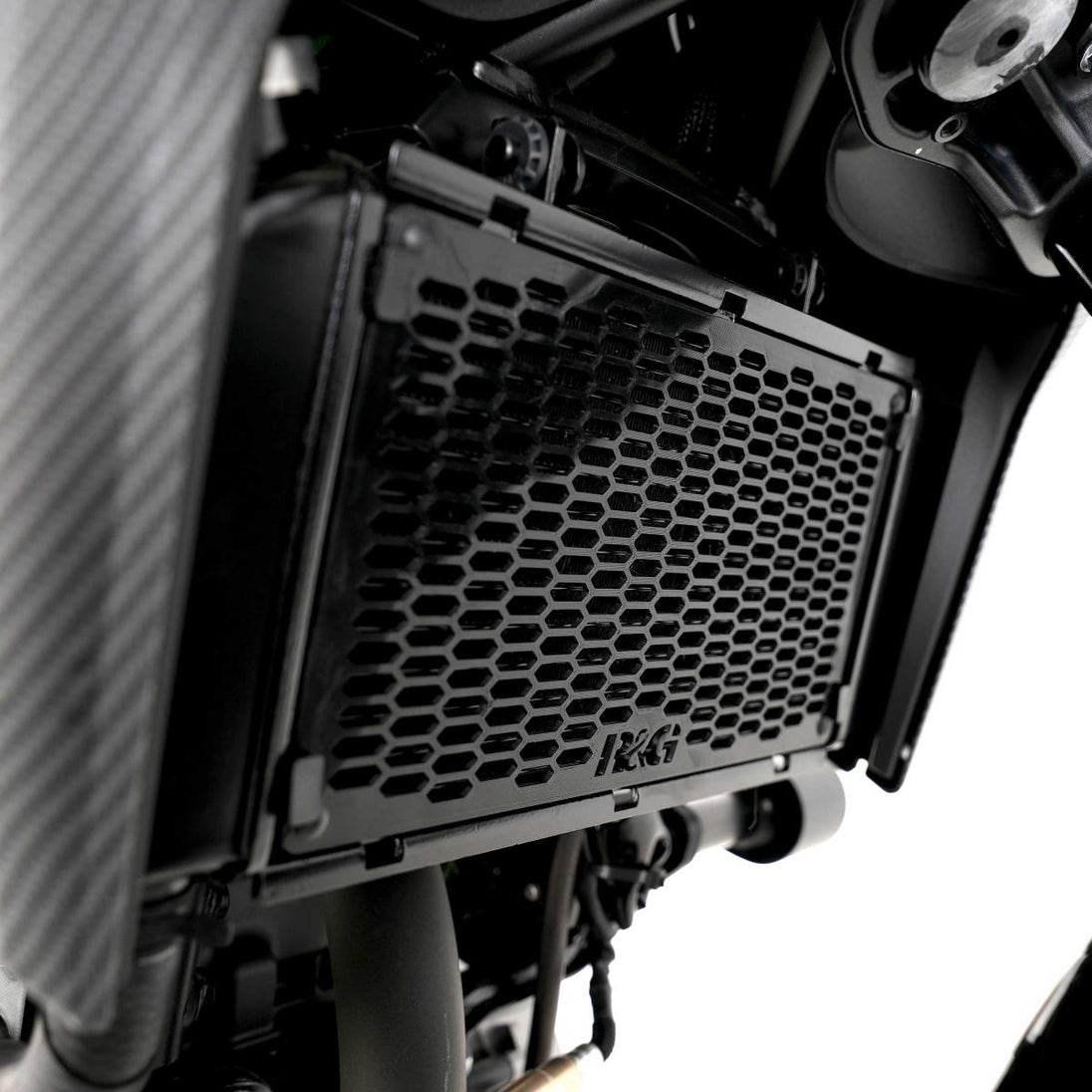 Våra PRO-kylarskydd har en ny geometrisk "hexa"-design som erbjuder ett seriöst skydd för dina ömtåliga kylare utan att begränsa prestanda eller luftflöde. R&G PRO-kylarskydd är gjorda av ett enda stycke högkvalitativ lättviktsaluminium och erbjuder ett oslagbart förhållande mellan styrka och vikt. Den laserskurna designen är modern och kompletterar alla motorcykellook. Dessutom är R&G PRO-kylarskydd korrosionsbeständiga tack vare den slående, texturerade, matta pulverlackeringen.